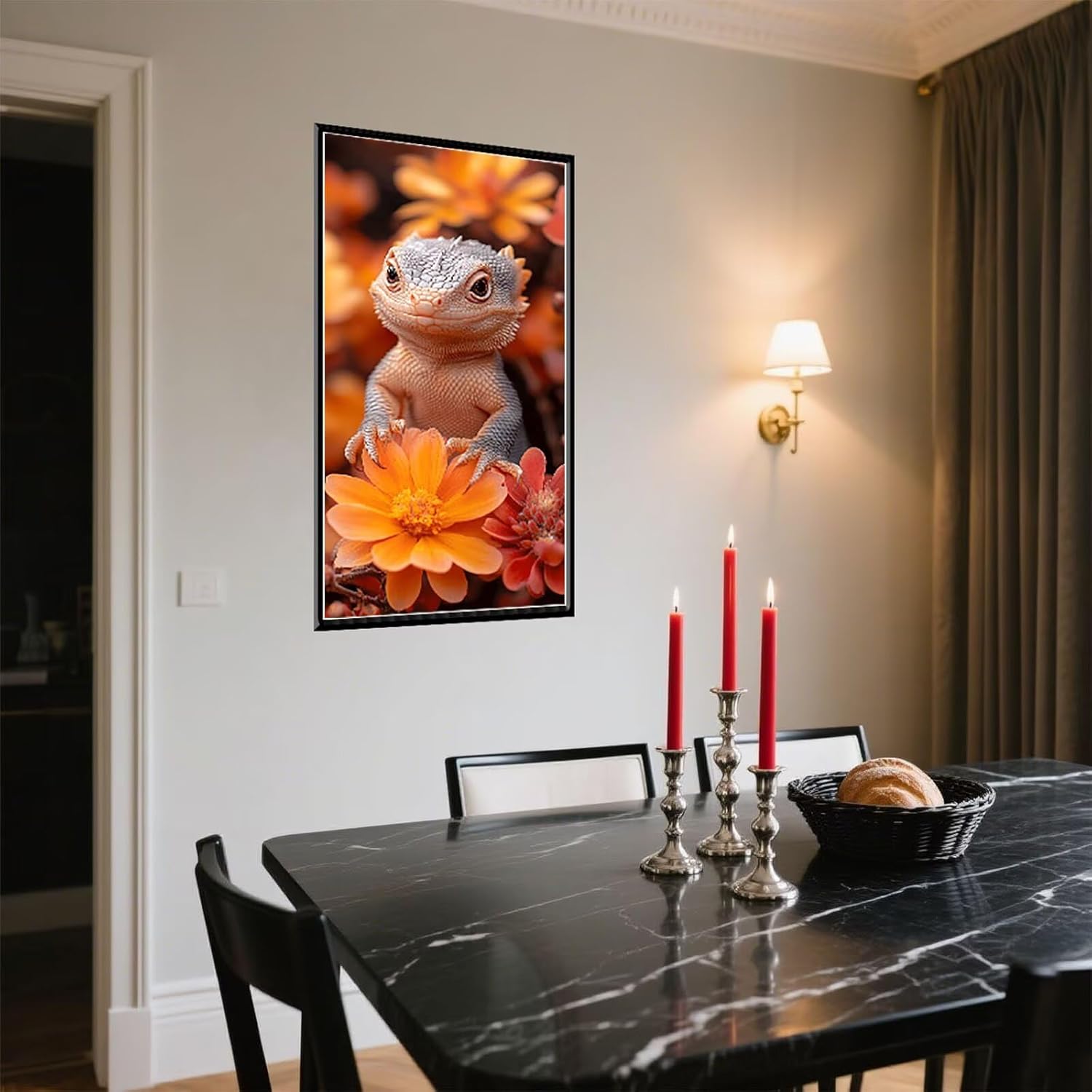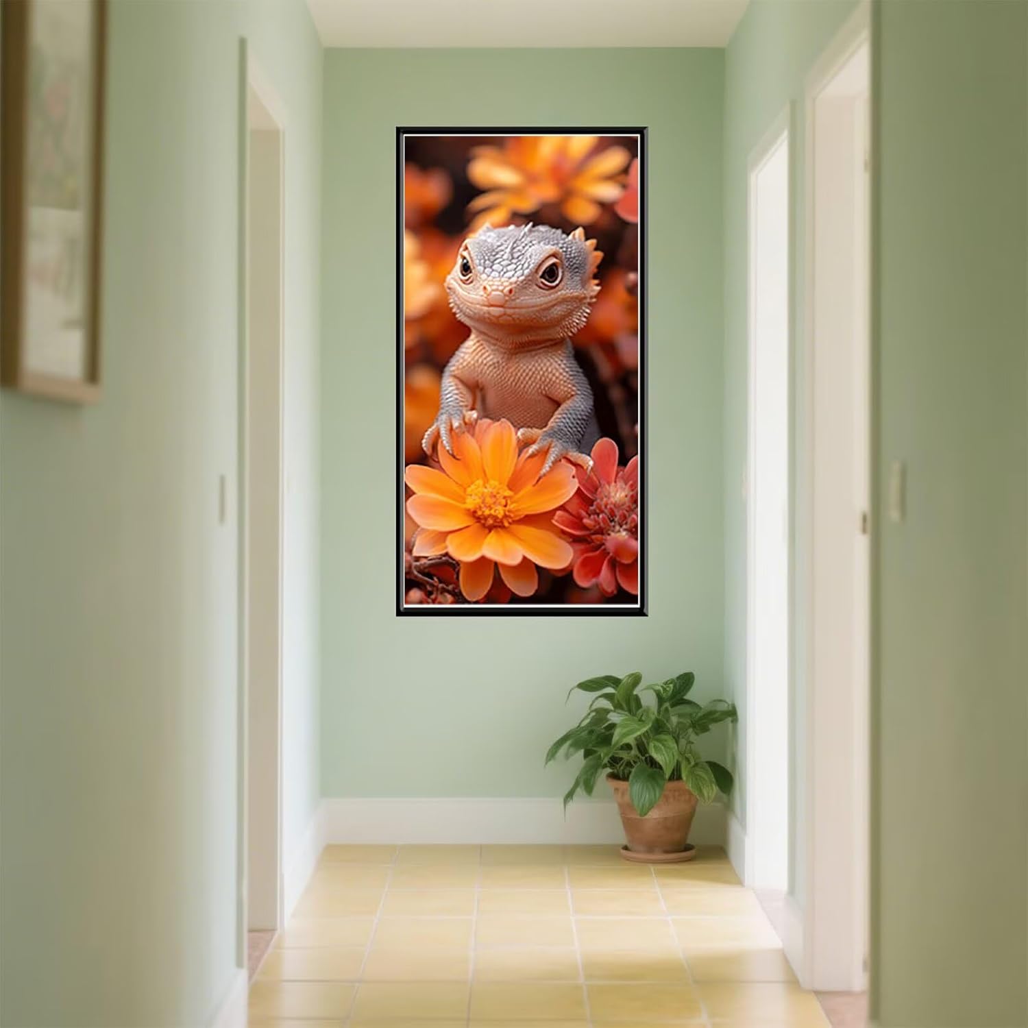 Lucertola Diamond Painting kit Completo Passatempo per Adulti Bambina Disegni con Perline da Attaccare 5D DIY Pittura Diamante Quadri Fiore Diamantini Crystal Art Kit Dimensioni 100x200cm f-11115