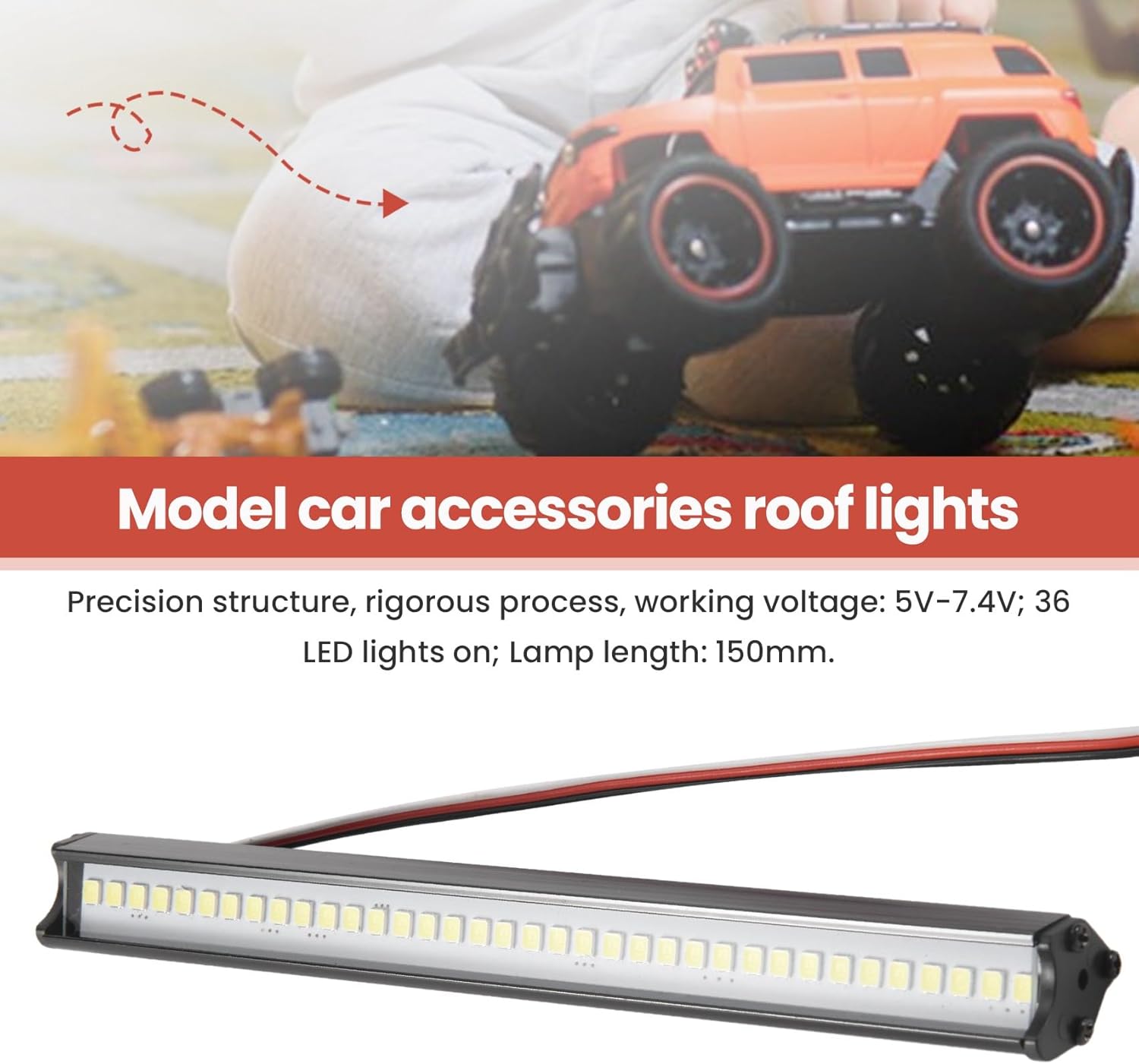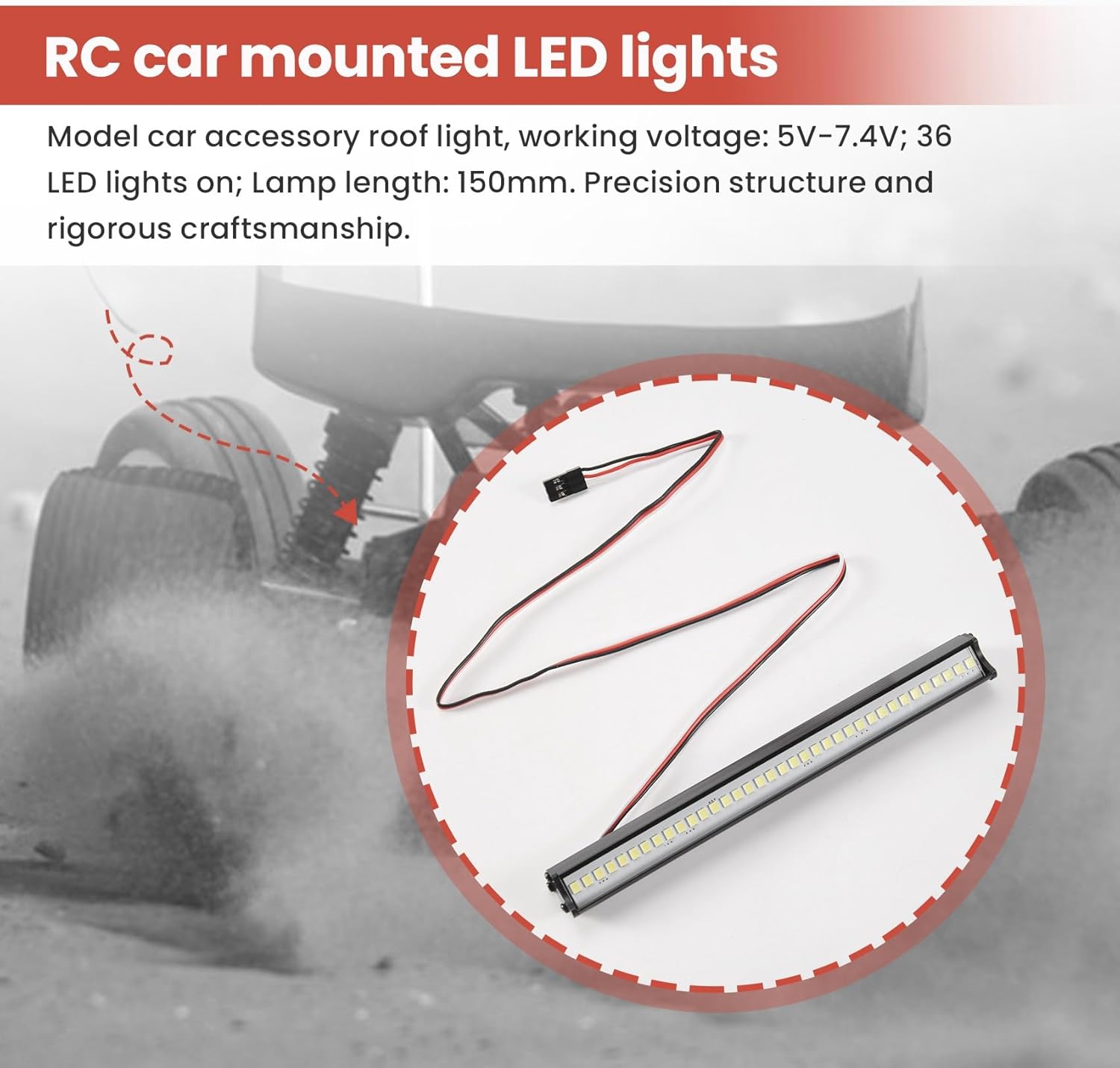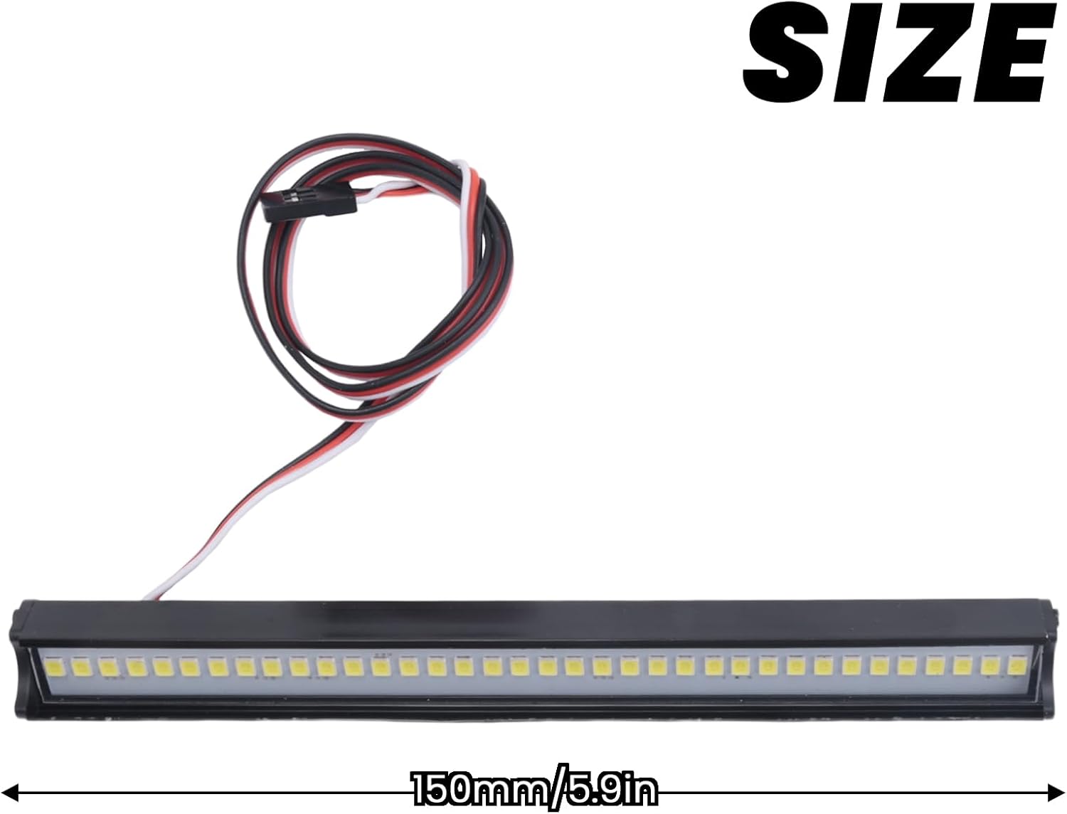 Accessori per barra luminosa RC fai-da-te super luminosi per scala 1/10 1/8, Slash, TRX4, Arrma Senton, Kraton, Axial SCX10, , , , Redcat ecc. Peso: 40 g Alimentato dal ricevitore (potrebbe richiedere il cavo JST Y); non collegare direttamente alle batterie Tensione di funzionamento: 5 V-7,4 V; 36 luci LED; Lunghezza luce: 150 mm Progettato per giocatori professionisti; Luce super brillante per rendere le tue corse RC fresche e attraenti
