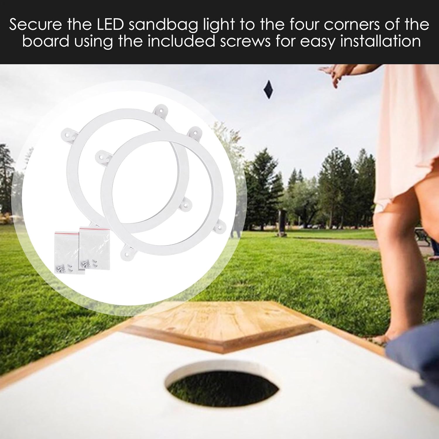 Conveniente installazione: attaccare le luci 'anello di cornhole ai angoli della scheda è una brezza usando le viti fornite. Trasforma rapidamente e facilmente il tuo gioco di cornhole in spettacolo notturno abbagliante. Ampiamente usato: aumenta il tuo gioco di cornhole con le nostre luci ad anello che illuminano vivacemente la tua tavola e buco, perfetti per picnic e incontri in campeggio. Sperimenta non-stop felice giorno e notte con questo accessorio ampiamente usato. Ben realizzato: realizzato con materiale addominali robusto, la nostra luce ad anello di cornhole vanta una build di lunga durata e una copertura di diffusore protettiva per illuminazione per gli occhi. Regalo delicato: il tuo gioco di cornhole con le nostre luci ad anello, l'aggiunta perfetta a qualsiasi festa in cortile. Facile da installare, queste vibranti luci a LED miglioreranno la tua esperienza e porteranno divertimento al tuo gioco. Un bel regalo per qualsiasi appassionato di cornhole. Design a batteria: queste luci ad anello di cornhole necessitano di 2 batterie AA non incluse per alimentare 18 perle di lampada luminosa che illuminano il gioco al buio; Il design impermeabile garantisce prestazioni durature.