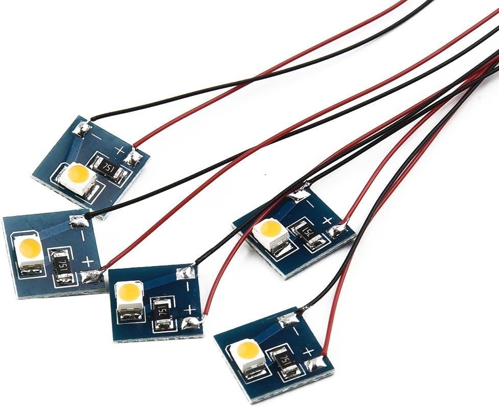 【Perfetti per OO per scala HO】 Questi LED precablati forniscono illuminazione bianca calda o bianca fredda per modellini di edifici ferroviari e scene con compatibilità 12 V CA/CC, rendendoli durevoli per il funzionamento continuo del layout Soluzione completa: ogni set contiene 5 LED 3528 con cavi da 20 cm e PCB da 1 cm x 1 cm con resistori integrati da 1000 ohm per installazione plug and play istantanea senza componenti aggiuntivi Prestazioni sicure ed efficienti: progettato con 3 V/12 V tensione diretta e corrente diretta massima di 20 mA, questi LED ad alta efficienza energetica generano un calore minimo fornendo allo stesso tempo una luminosità costante per lunghi momenti di funzionamento del modellino del treno Installazione semplice: con cavi preassemblati lunghi 20 cm e dimensioni compatte di 1 x 1 cm, questi LED si adattano facilmente alla maggior parte delle strutture OO For HO e offrono un posizionamento flessibile per effetti interni realistici Applicazioni di modelli versatili: adatti a vari tipi di modellismo, comprese stazioni ferroviarie, case e negozi. Queste opzioni bianco freddo e bianco caldo consentono di creare un'atmosfera personalizzata per scene e layout diversi