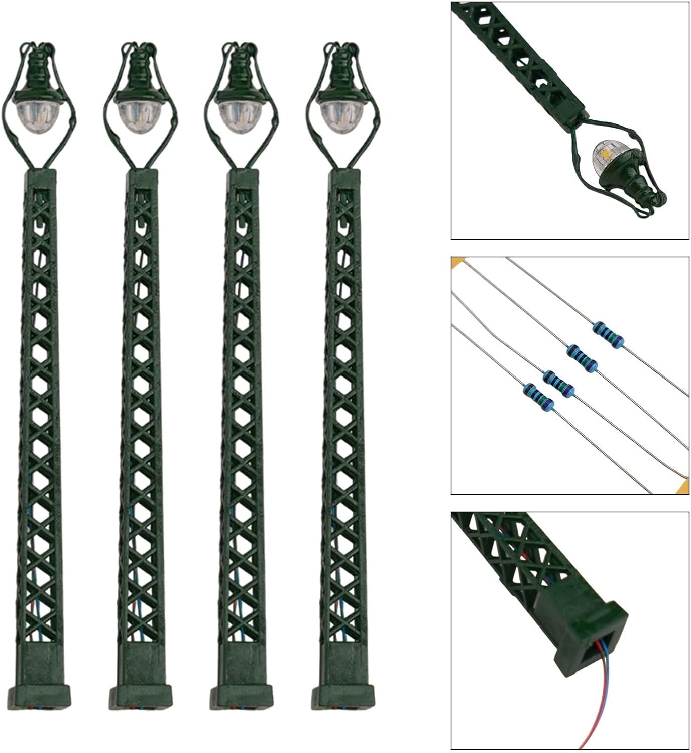 【Luci ferroviarie per layout di modellismo】 Queste luci a traliccio sono appositamente progettate per modellismo ferroviario e layout di edifici. Realizzati con LED, offrono una soluzione di illuminazione realistica. 【Adatto per scala 1:160】 Le luci sono perfettamente ridimensionate per i modelli con scartamento N, integrazione perfetta nel tuo layout. 【Connessione 3 V CC o CA】 Queste lampade richiedono un'alimentazione 3 V CC o CA. Fare attenzione a non utilizzarli direttamente con 12 V o 16 V per evitare danni al LED. 【Include resistori in serie per il collegamento a 12-16 V】 Per coloro che utilizzano un trasformatore da 12-16 V, le lampade sono dotate di resistori in serie che devono essere installati nella linea di alimentazione. Costruzione in metallo: realizzate in metallo, queste luci sono costruite per durare. Forniscono una soluzione di illuminazione affidabile per il tuo plastico ferroviario o il layout dell'edificio.