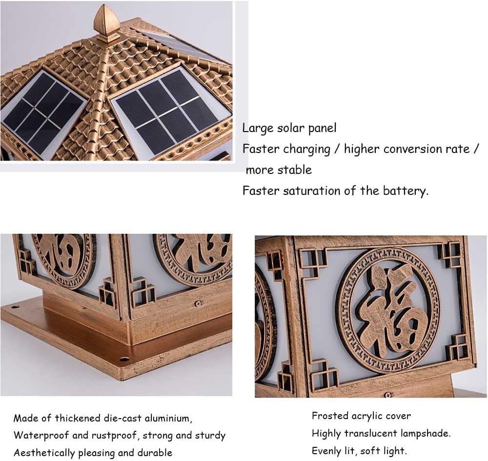 * Sol Po Light】Sol la po lig c turn automatico du ao daw Brightne wi va wi sunlig intensi a chargi time, 180LM.6 hou chargi sun plac Sol lig po c wo 15- hou nig (abo 1 notti) Industri Sty Wi Mode Appe La Stre Lights M mode a industri element Th outdo po Colu La ma stur ca alumin afinish wi fi coatin IP4 c wo und rai hai sno outdo environme f anni. * Ogni installazione】Th la po lig fixtu ne assemble, mo cor elettr wirin c direct plac a 3-in columns/po f wi t mounti ba a fl surfac su t select locati a sp wi fu sunshine. * Wide Us f Outdo Decorazione】 Design f outsi landsca lighti projec a commerci application Beautif adornme Pill la a illuminati ide choi f doorwa deck recinzione flusso letto pati portico pa a altri luoghi esterni. Rispettoso dell'ambiente e facile da usare.