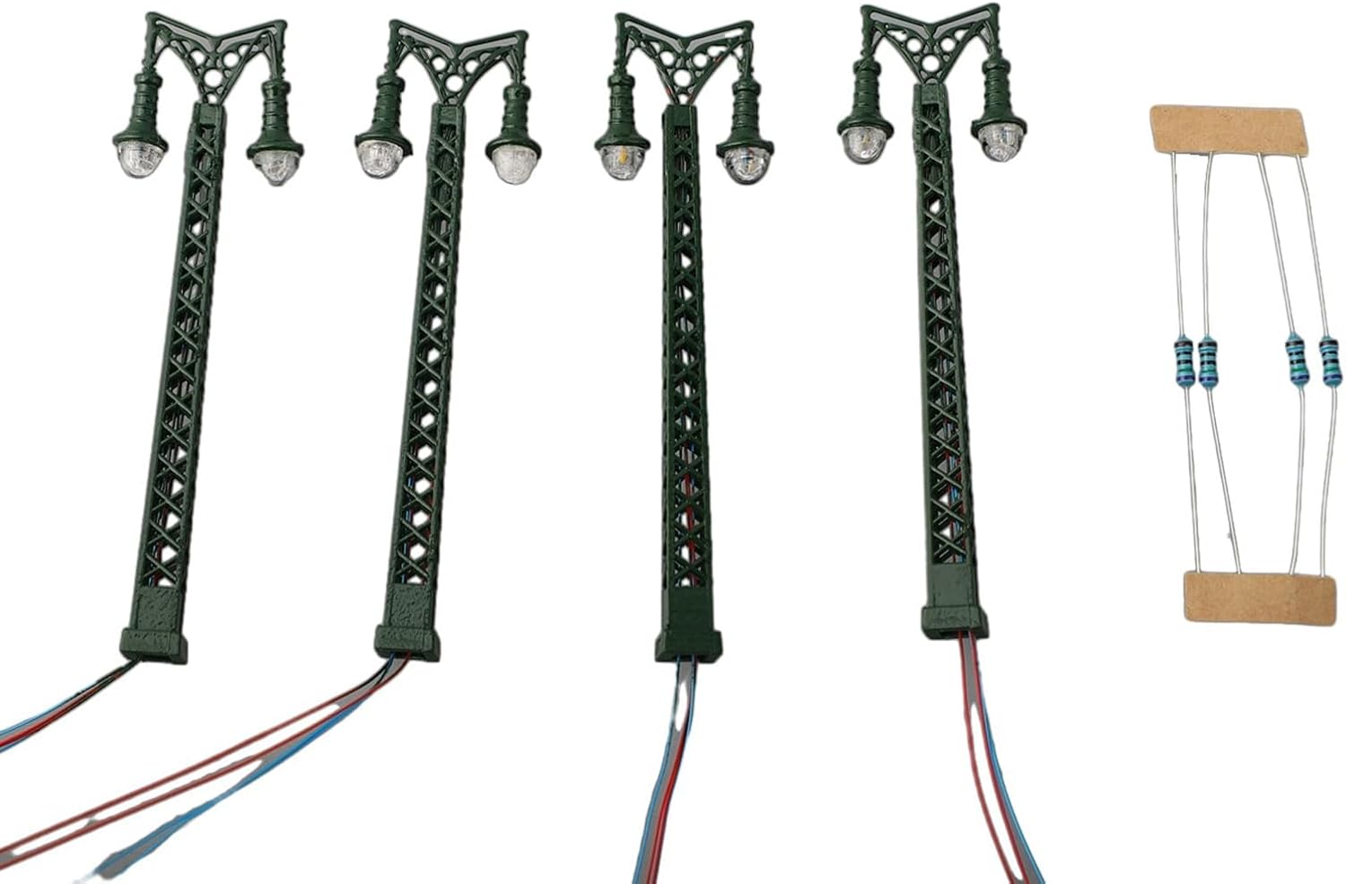 【Luci del treno modello a LED】 Costruite con LED, queste luci del treno modello sono perfette per il layout dell'edificio. 【Adatto per tensione 3 V】 Queste lampade sono appositamente progettate per tensione 3 V. Non utilizzarli direttamente con 12V o 16V per evitare danni al LED. Assicurati di applicare la corrente operativa corretta di 20 mA a ciascun LED. 【Scala 1:160】Con una scala di 1:160, queste luci sono adatte per modellini ferroviari a scartamento N. 【Installazione semplice】 Viene fornito con resistori in serie per il collegamento a 12-16 V. Collegare il resistore incluso alla linea se si utilizza un trasformatore da 12-16 V. 【Materiale】 Realizzate in metallo, queste lampade sono resistenti e di lunga durata. Adatto ad appassionati dai 14 anni in su. La fornitura comprende 4 lampade e 4 resistori in serie per il collegamento a 12-16V. Gli accessori mostrati non sono compresi nella fornitura.