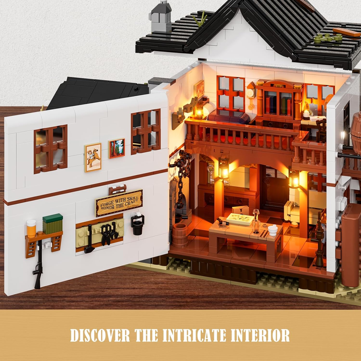 【Sistema di illuminazione a LED|Atmosfera di notte】 Dotato di lampioni, lampade a sospensione, lampade a olio e candele – combinato con realistico difetto di forgiatura nel ritmo respiratorio. Al buio si crea un impressionante gioco di luci che trasforma il tuo modello in una mostra coinvolgente. 【Architettura occidentale vintage|Perfetto per collezione e regalo】 Muri in pietra incrinati, assi di legno rattoppati e un tetto in metallo riportano il fascino ruvido dell'ovest. Insieme a cactus e scene desertiche crea un autentico pezzo da collezione, ideale anche come regalo originale. Lavorazione artigianale nei dettagli: esperienza di costruzione realistica: forno forgiato, soffietto, incudine e mola sono riprodotti fedelmente nei dettagli. Sperimenta l'intero processo di forgiatura durante la costruzione, dal riscaldamento alla forgiatura, al raffreddamento e alla lucidatura. Dettagli di scena interattivi, più storia e immersione: grazie alla parete posteriore aperta, l'interno può essere completamente visualizzato: fucina, officina di riparazione e sala relax sono chiaramente suddivisi. Pezzi d'oro nascosti e abiti intercambiabili creano sorprese e storie vivide. 【 2 anni di garanzia|Sicuro e senza preoccupazioni】 Lumibricks offre su tutti i set 2 anni di garanzia del produttore e sostituzione gratuita delle parti mancanti. Per Natale, compleanno o per la vostra collezione personale, con questo set sarete al sicuro.