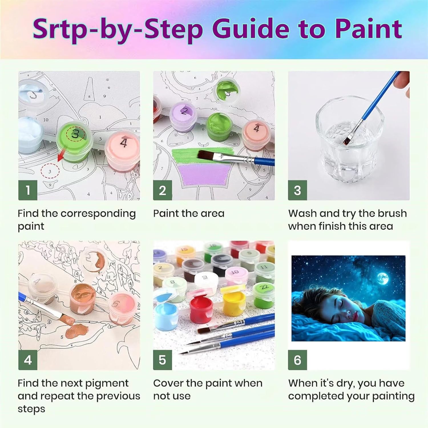Luna Bella addormentata Dipingere con i Numeri per Adulti Principianti, Dipingere con i Numeri Bambini, Paint by Numbers Kit Fai da Te Olio La Pittura di Numeri Kit, (30x40cm, Senza Cornice) M-485