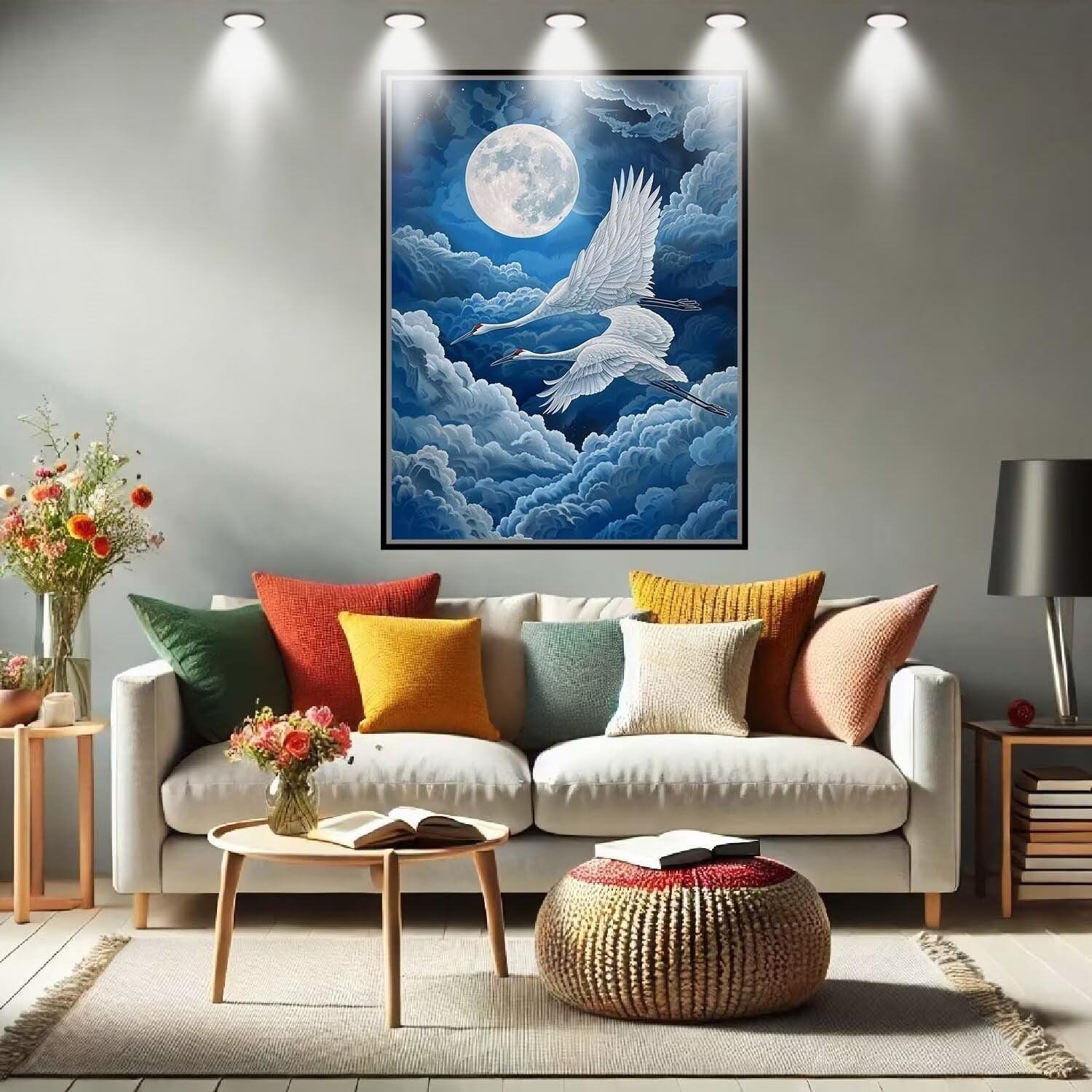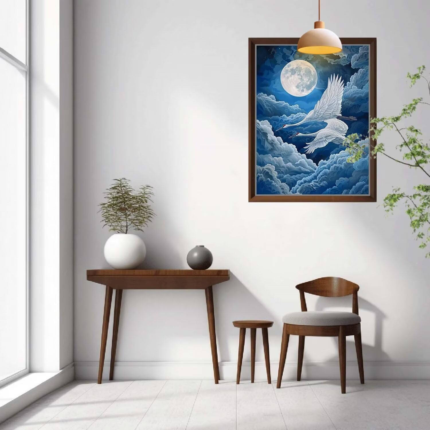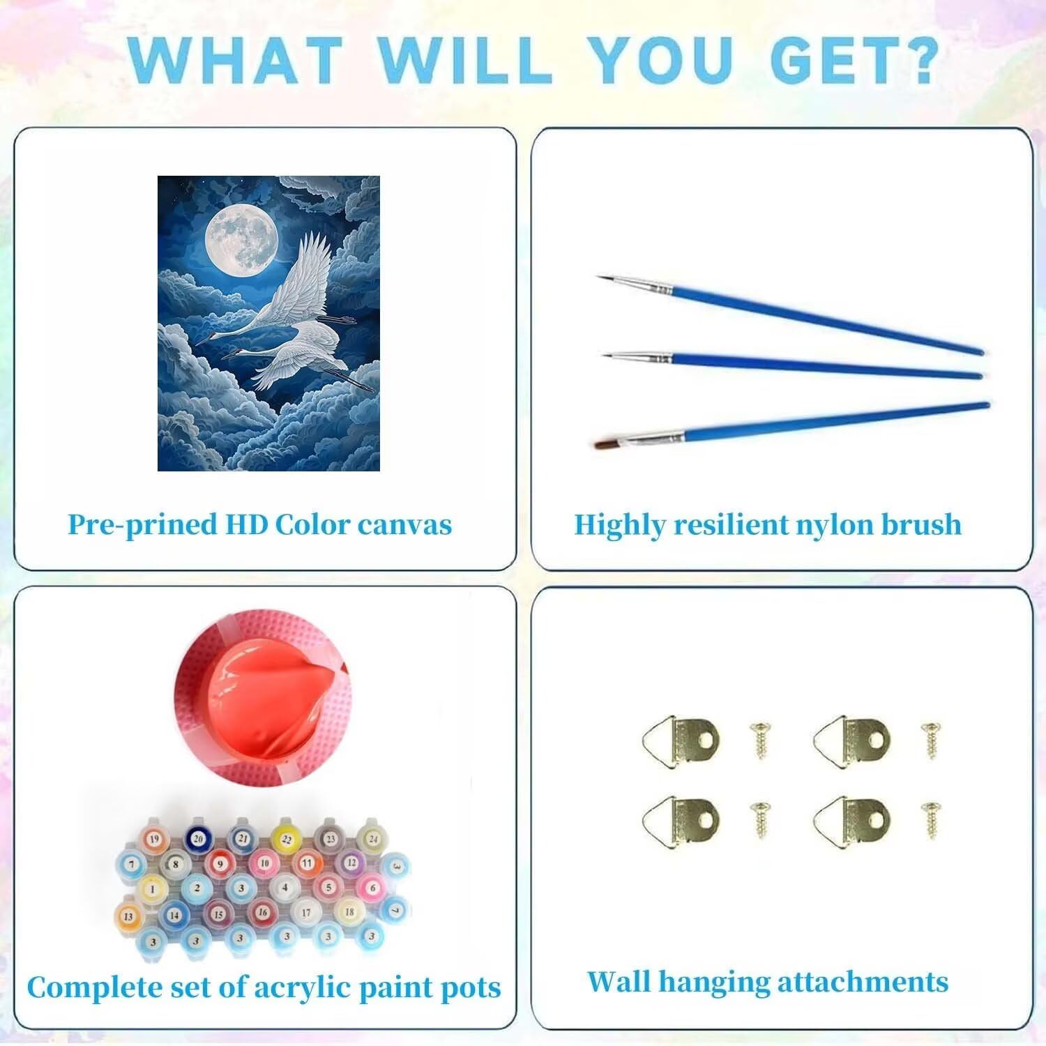 Luna,Gru della Manciuria Kit per Dipingere con i Numeri,Quadri da Dipingere Numerati per Hobby Creativi Adulti,Kit di Pittura a Olio su Tela Principianti e Bambini per Decora la Casa 50x70cm 54N-4794