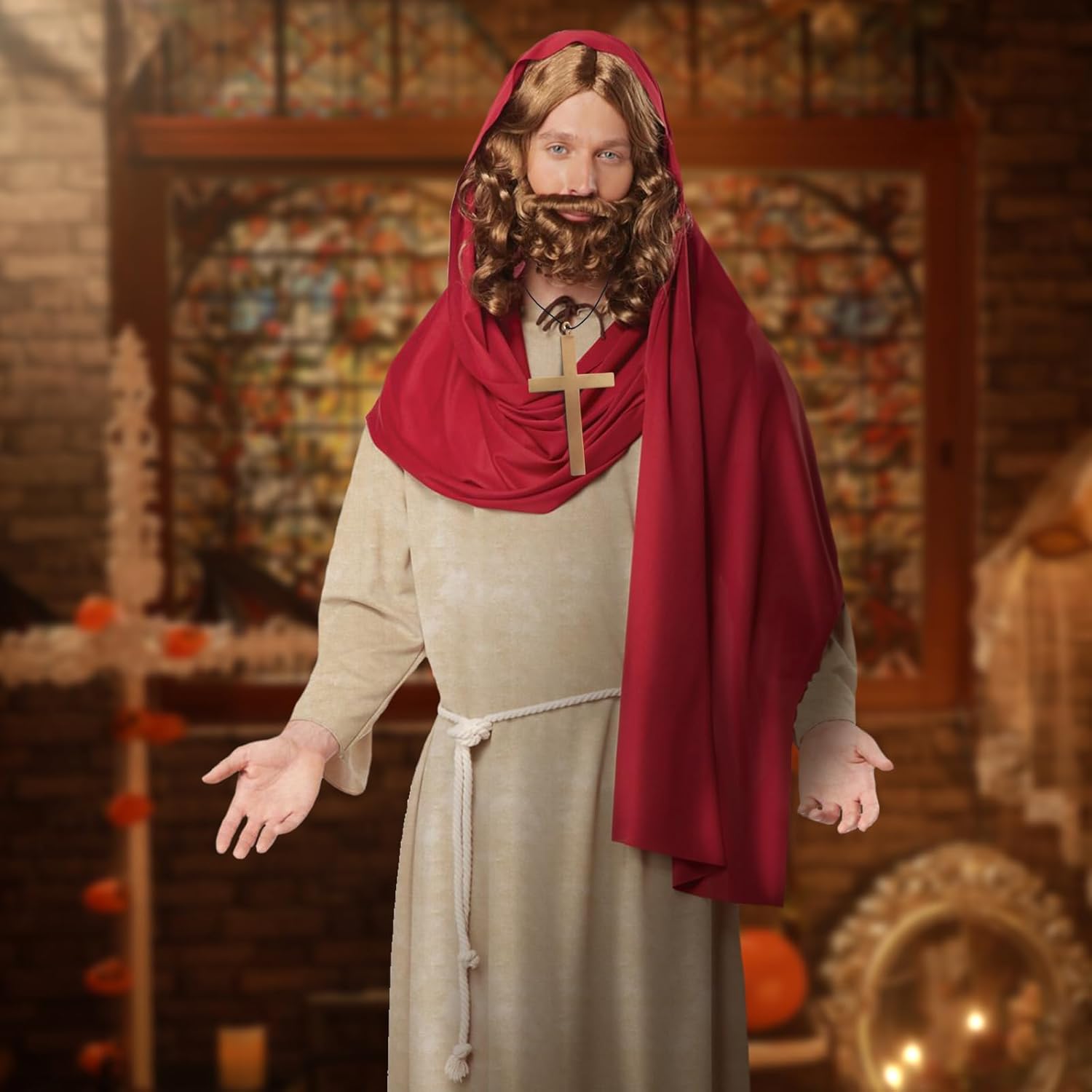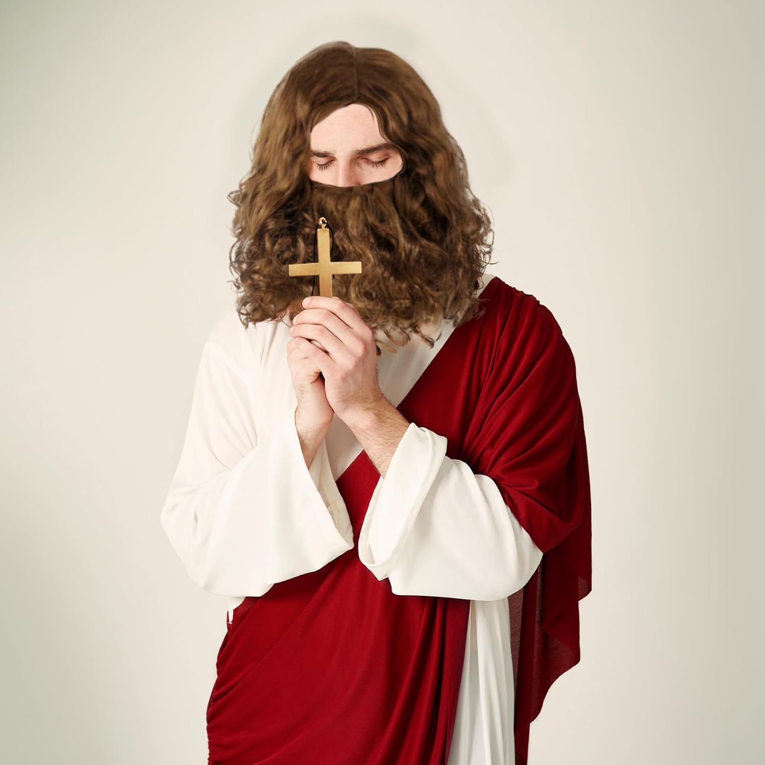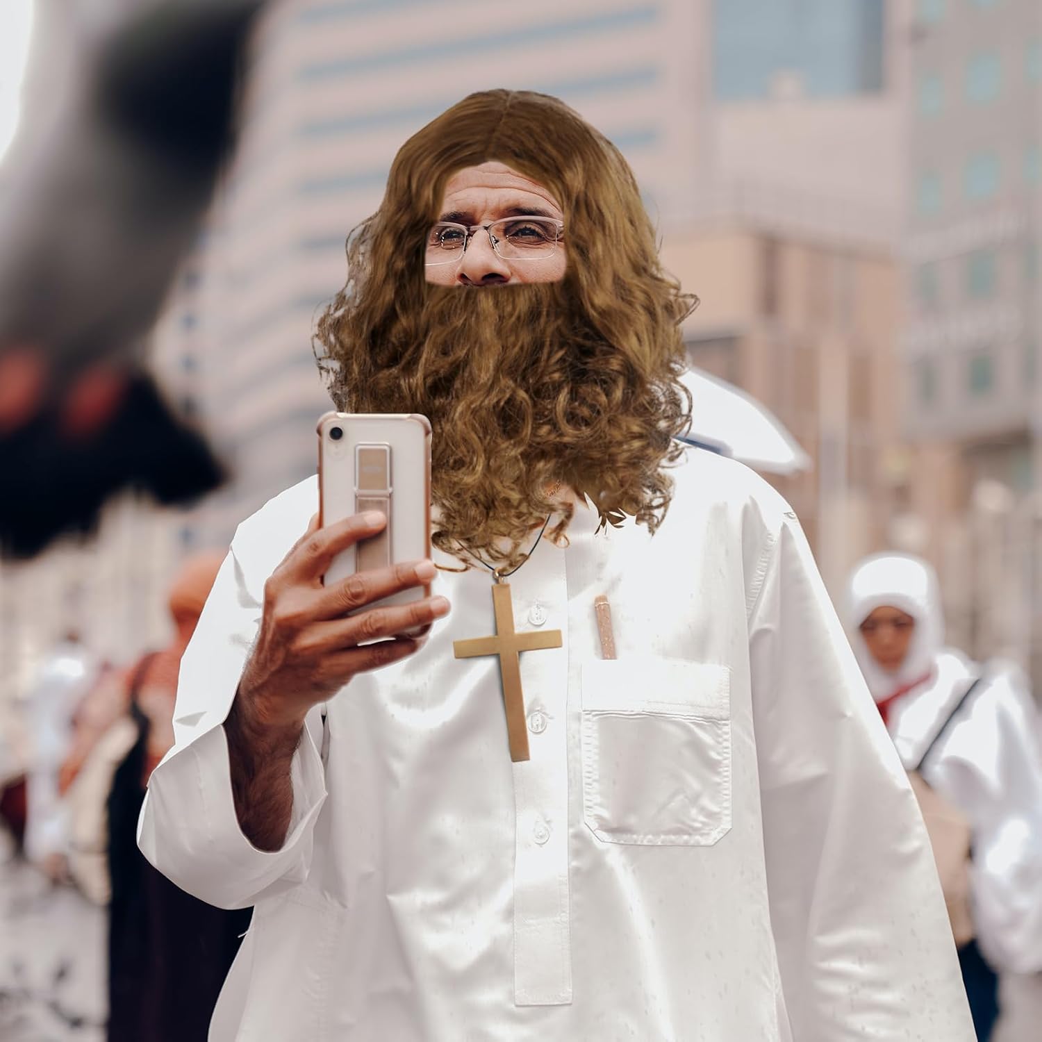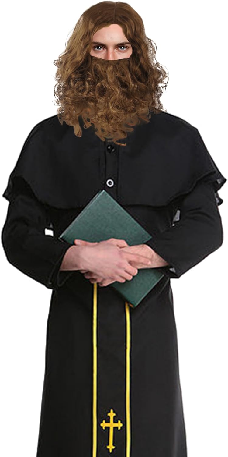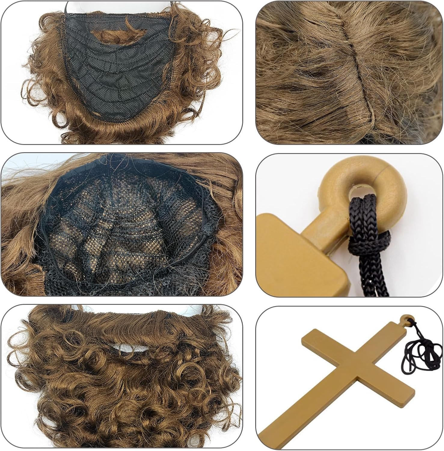 Parrucca e barba in maschera: questi set di parrucche ricci e collane incrociate sono ideali per qualsiasi spettacolo, cosplay di maghi e personaggi medievali, che si abbinano perfettamente a feste di palcoscenico, film e costumi. Alta qualità: realizzato con fibre sintetiche, questo set di parrucca e barba è morbido, confortevole e realistico. Le fibre sono di facile manutenzione, garantendoti la possibilità di goderti questo set per molte festività natalizie a venire. Facile da indossare: la barba è dotata di un elastico che può essere facilmente regolato per adattarsi a diverse forme e dimensioni del viso. È comodo da indossare e non scivola o cade facilmente. Perfetto per il gioco di ruolo: la parrucca lunga e riccia e i baffi sono ideali per cosplay di celebrità, comici o membri di gruppi di ragazzi, aggiungendo una sensazione affascinante e fresca al tuo costume. Regalo perfetto: la parrucca da uomo è un accessorio indispensabile e un regalo meraviglioso per i tuoi amici e la tua famiglia in occasione di compleanni, Halloween e Natale, lasciando ricordi indimenticabili e portando un grande successo alla tua festa.