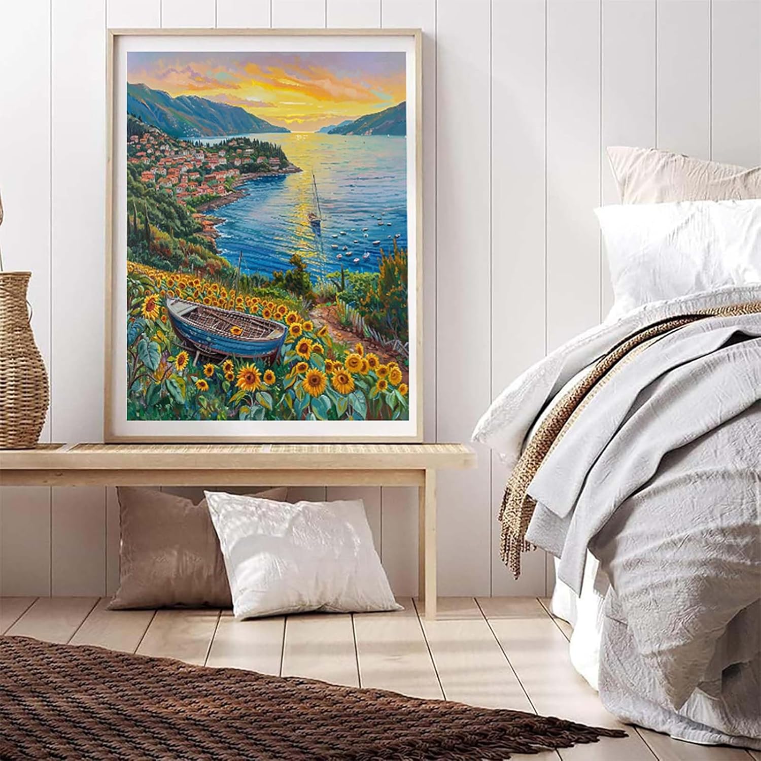 LUOLYYEI Paint by Numbers Mare Dipingere con i Numeri Adulti con Pennelli e Colori Acrilici, DIY Girasole Dipingere con i Numeri per Adulti Bambini Principianti, Decora la Casa Regalo - 70 x 95cm U-Q