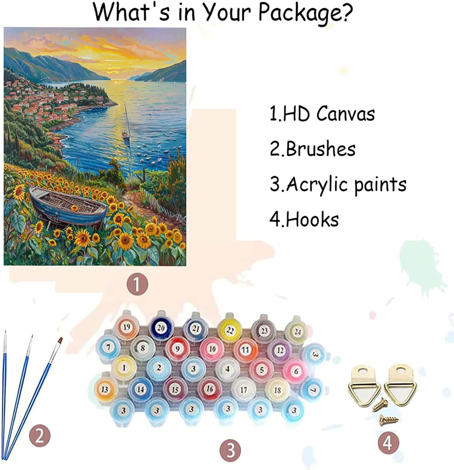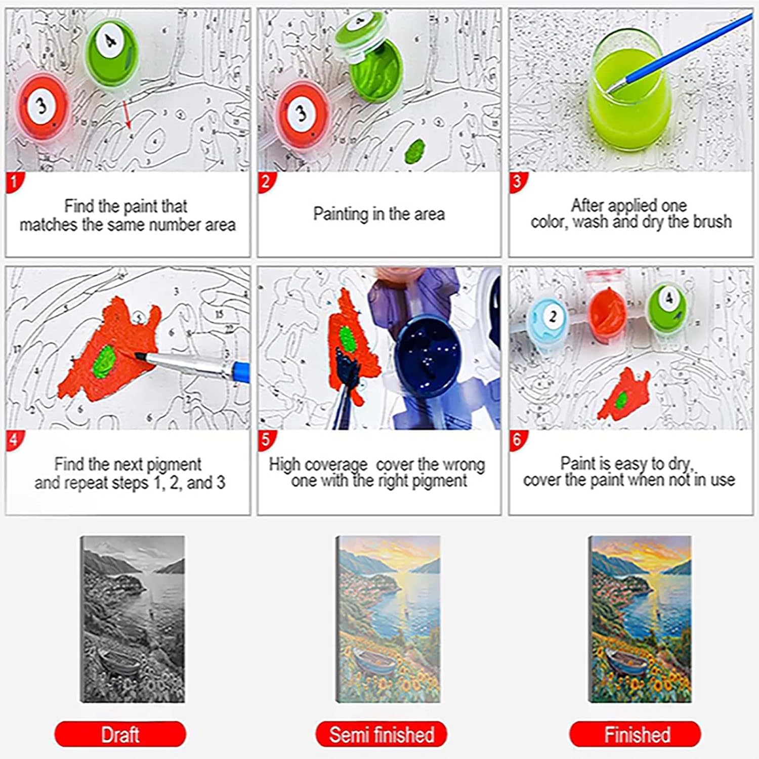 【Kit di Dipingere con i Numeri per Principianti】: Progettati per chi è nuovo nella pittura, i nostri kit di dipingere con i numeri adulti semplificano la creazione di opere d'arte straordinarie a proprio ritmo 【Tele pre-Stampate di Alta Qualità】: Ogni tela da dipingere con numeri è realizzata con materiali resistenti, garantendo una facile applicazione dei colori. I numeri chiari aiutano a identificare le tonalità, offrendo un'esperienza rilassante 【Pigmenti Pratici, Pronti all'uso】: Ogni pigmento arriva in quantità sufficiente per coprire linee e numeri. Con una sola mano, otterrete un dipinto con numeri vivace e finito, senza bisogno di miscelare 【Perfetti per ogni Ambiente】: Questi quadri da dipingere numerati arricchiscono qualsiasi spazio, dagli uffici alle camere da letto. Sono un regalo ideale o una decorazione personale 【Assistenza Clienti】: Per domande sul vostro kit di dipittura con numeri adulti, contattateci tramite Amazon. Siamo pronti ad aiutarvi per un'esperienza di dipingere con i numeri fluida