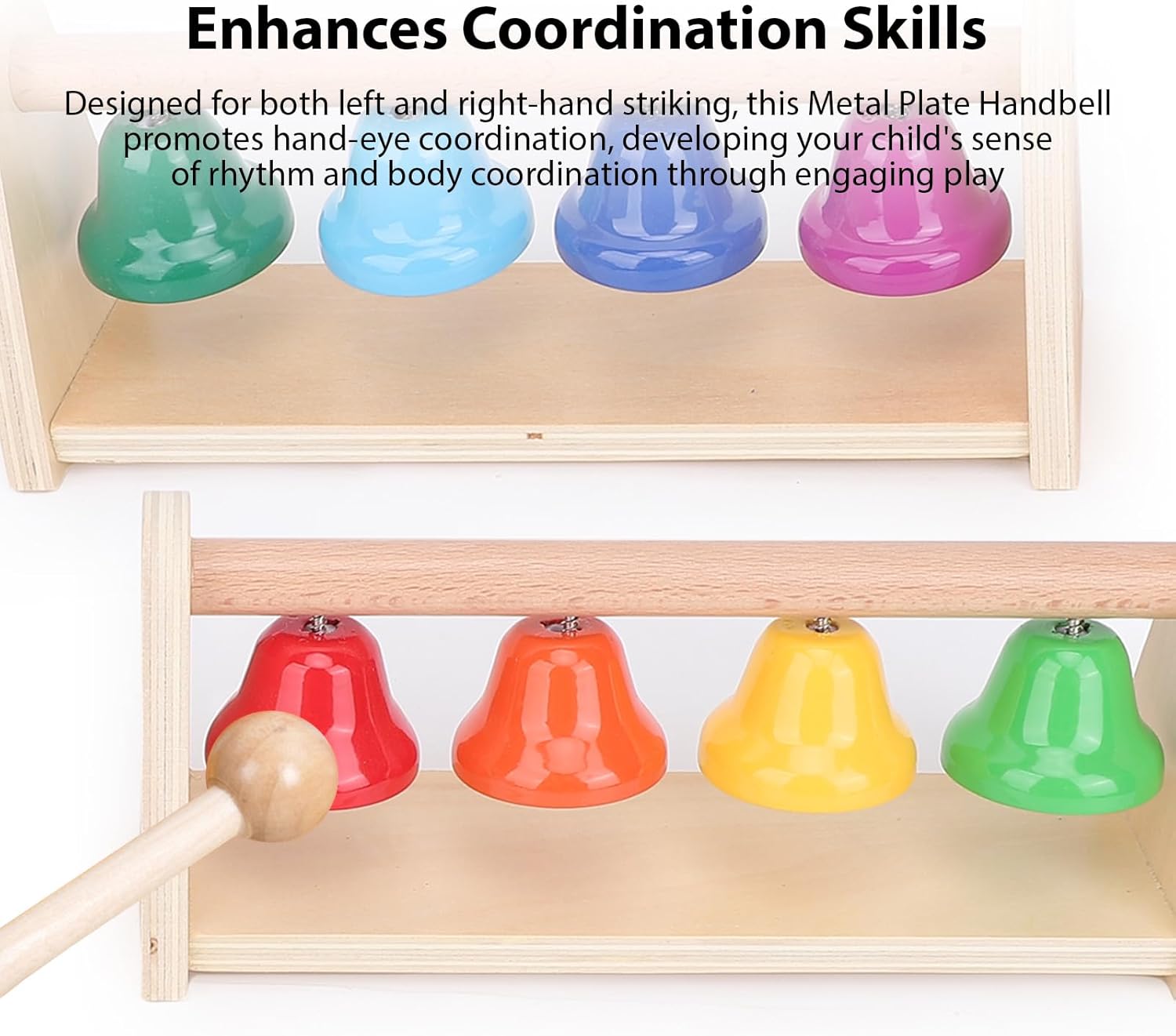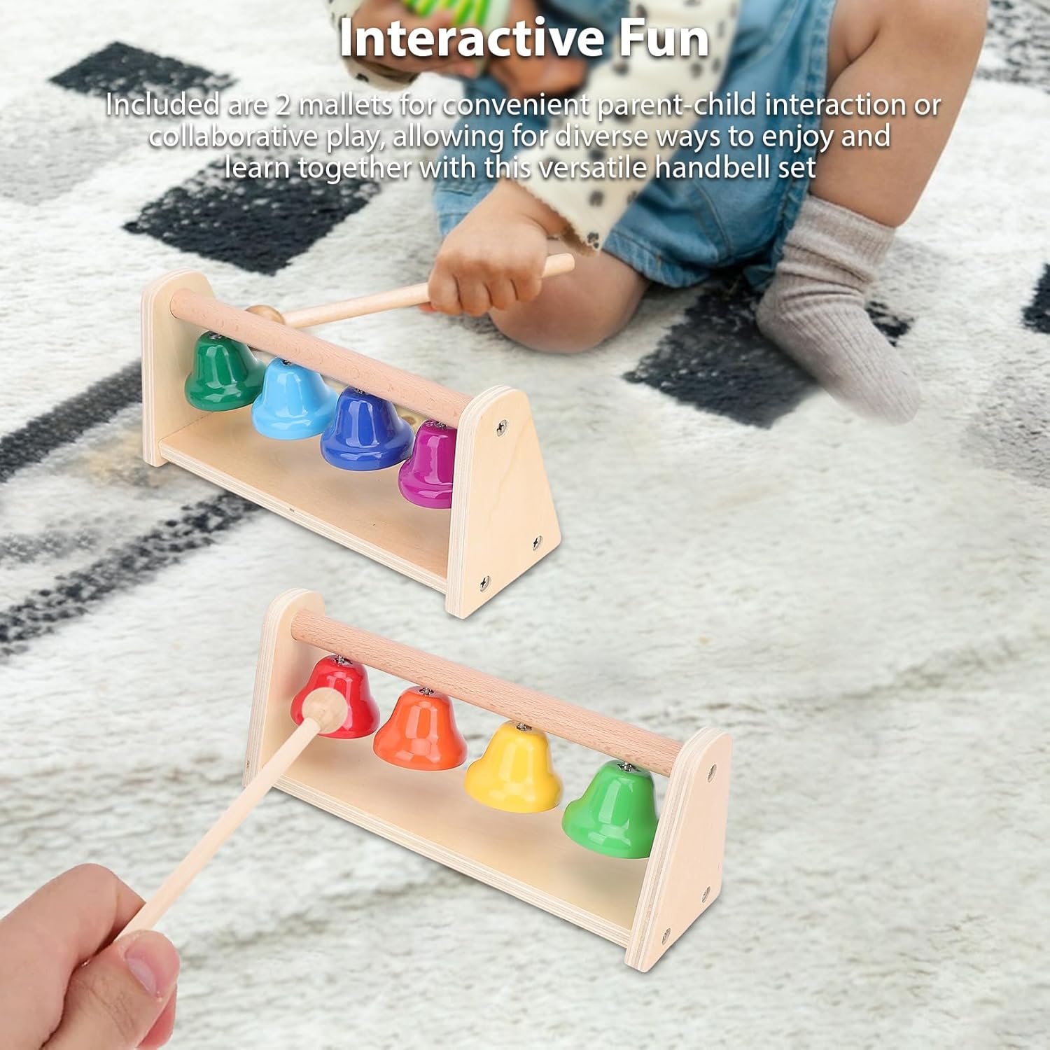 Materiale premium: realizzato in legno massiccio grezzo con un processo di vernice di cottura premium, il nostro set di handbell desktop garantisce una cordialità certe e ambientale mentre fornisce toni musicali chiari e puri. Esperienza di apprendimento colorata: la campana desktop a 8 note presenta una combinazione di colori vivace che migliora sia il suono e il riconoscimento visivo, rendendolo uno strumento ideale per l'illuminazione musicale e la cognizione del colore del tuo bambino. Migliora le capacità di coordinamento: progettate per colpi di scena sia a sinistra che a destra, questa borsetta di metallo promuove la coordinazione occhio-mano, sviluppando il senso di ritmo e il coordinamento del corpo di tuo figlio attraverso un gioco coinvolgente. Explorazione melodiosa: con un'ottava completa di campane di toni metalliche in 8 colori abbaglianti, il tavolo da tavolo affascina la curiosità di tuo figlio e le ispira a esplorare il delizioso mondo della musica. Divertimento interattivo: sono incluse 2 mazze per una comoda interazione genitore-figlio o gioco collaborativo, consentendo diversi modi per divertirsi e imparare insieme a questo set di borsettente versatili.