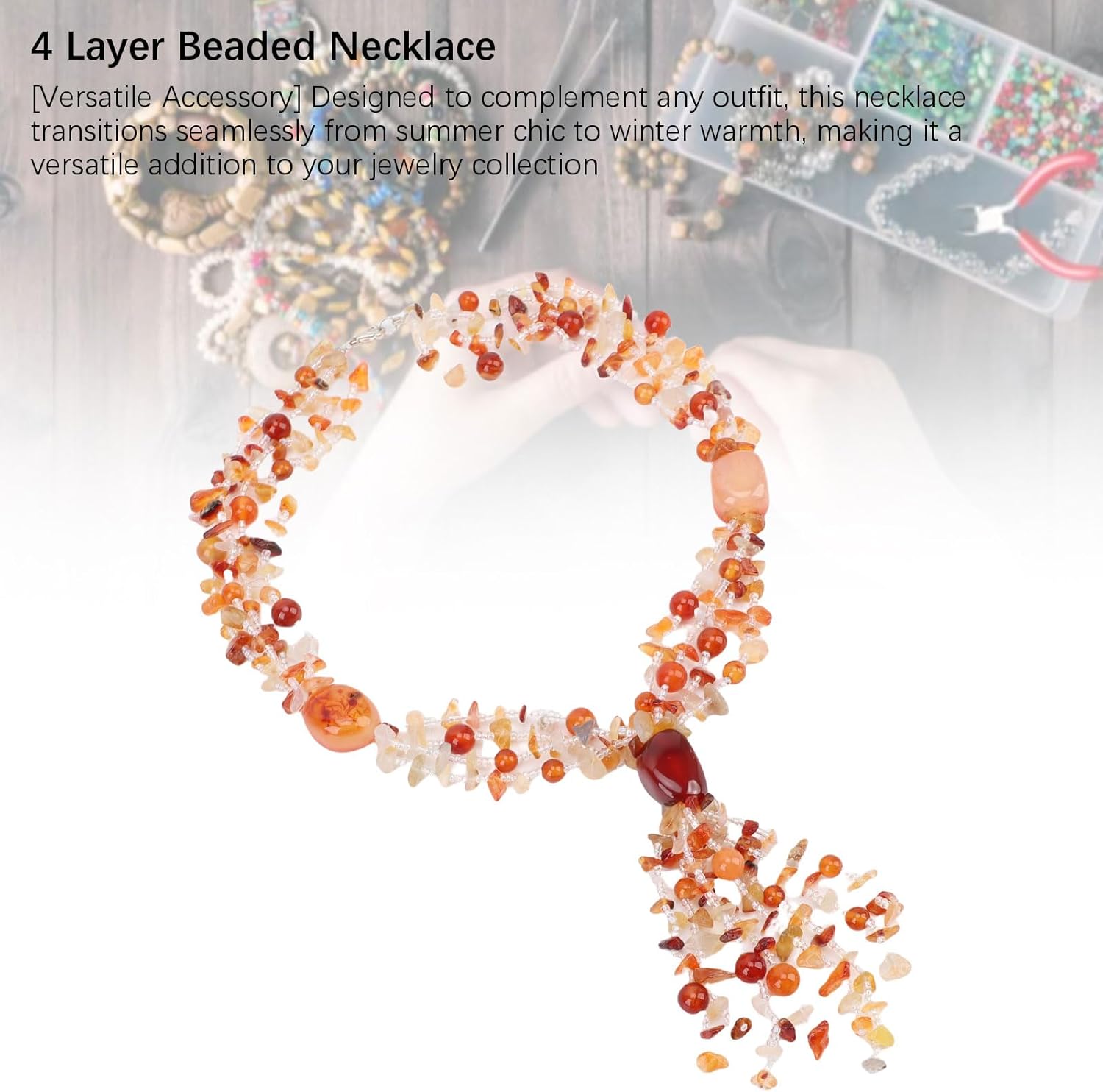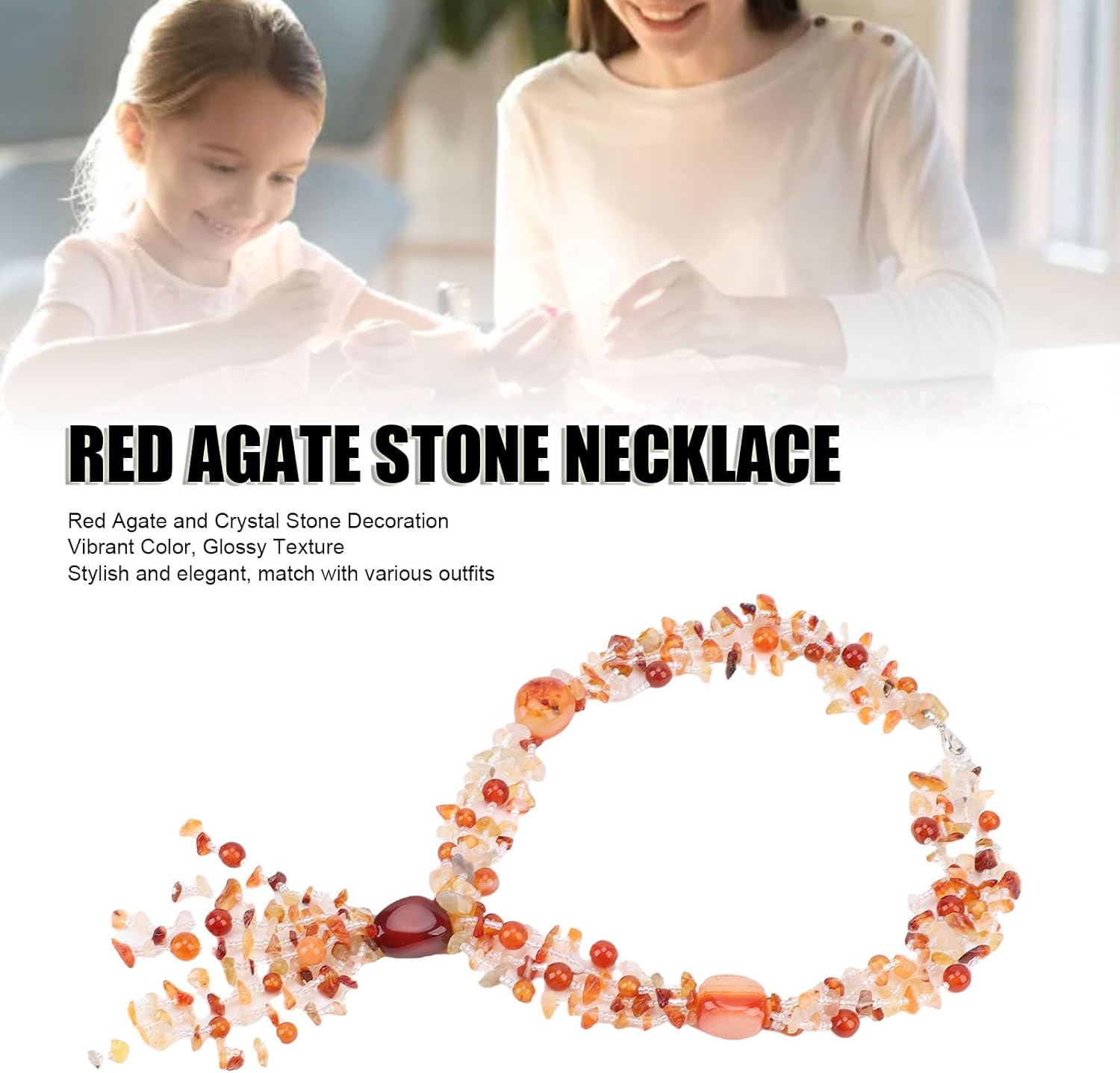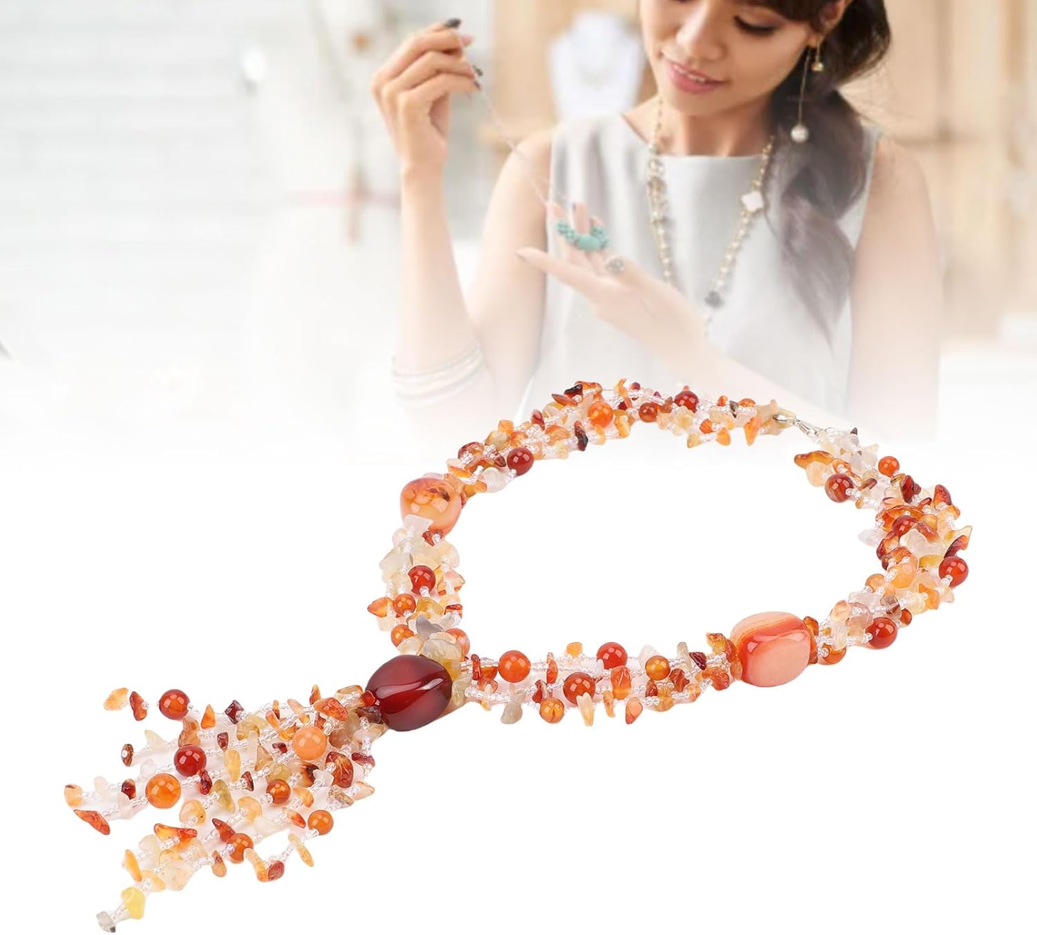 Spec: Tipo di articolo: collana di perline Materiale del prodotto: Stone Usa: questa collana di perline è alla moda ed elegante, abbinando facilmente vari abiti per migliorare la tua eleganza e bellezza. Questa catena per il collo delle donne accattivanti ed eleganti può essere indossata da sola, come accessorio squisito, o abbinato a magliette e maglioni. Lista Imballaggio: 1 x collana di perline