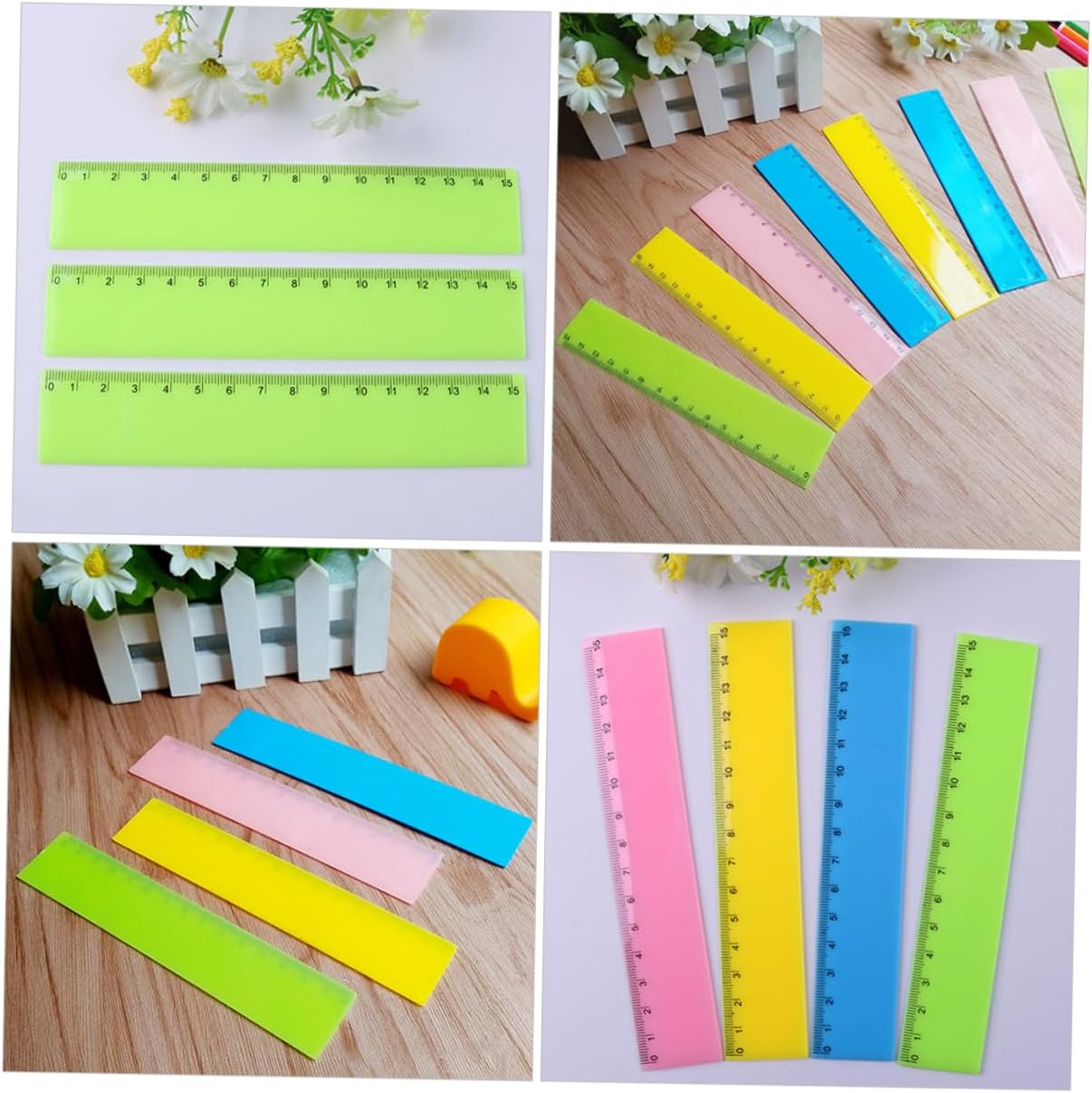 Righelli colorati per gli studenti: non solo sono belli da vedere, ma la loro consistenza e il loro peso sono progettati per sembrare ingombranti per la classe. Righelli dritti: dimensioni ridotte, peso leggero, il nostro righello colorato è facile da trasportare e riporre, non occupa molto spazio, righello per la classe. Righelli convenienti: il righello dritto dal design colorato è adatto per aule, scuole, uffici, case, ecc., un ottimo aiuto per misurare, righelli in plastica. Righelli colorati multifunzione: incisi con scala chiara incisa, il righello è facile da leggere e utilizzare, righelli portatili molto pratici e convenienti. Righelli in plastica multifunzione: righello colorato dal design creativo, è un righello colorato per bambini che piacerà a loro.