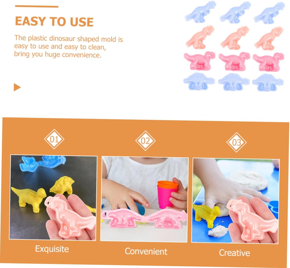 Stampi per impasto per: fatti di plastica, nessuna deformazione, senza crepe e superficie liscia, sicuri da usare, Stampo per impasto per argilla da modellare: puoi divertirti con il mestiere di argilla da modellare con i tuoi bambini, che può migliorare le abilità pratiche, stampo in plastica per dinosauro Clip per dinosauro: bordi lisci e senza sbavature, puoi usarlo in sicurezza e divertirti e divertirti, Stampo per dinosauro 3D Stampo per dinosauro: liscio e rotondo, facile da staccare Rilascia lo stampo, non fa male alle mani, sicuro e affidabile, divertente e interessante, giocattolo per pasta Stampi per pasta per dinosauro: lo stampo è adatto per pressare e modellare e promuove l'immaginazione, la creatività e le abilità pratiche dei bambini. stampo per pasta di dinosauro
