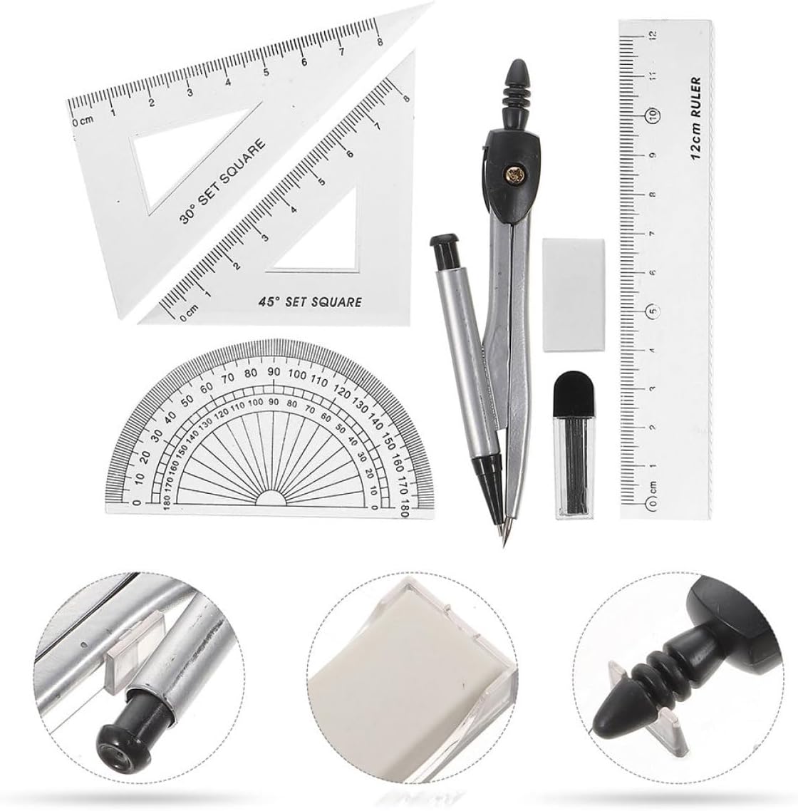 Uso versatile: adatto a insegnanti, studenti, architetti e ingegneri, questo set è adatto per una di, progetti scolastici alle attività di disegno professionale, righelli, materiale scolastico Costruzione: questo set è progettato per resistere all'uso regolare, rendendolo una scelta affidabile per la scuola, l'ufficio o l'uso domestico, strumento di geometria della bussola, goniometro Robusto e: questo set è progettato per durare nel tempo, rendendolo una scelta affidabile per un uso a lungo termine in varie impostazioni, righello matematico geometrico, compasso da disegno Durevolezza duratura: questo set è costruito per durare, garantendo che possa gestire le esigenze dell'uso quotidiano in ambienti educativi e professionali, bussola per geometria, bussola per geometria Facile da usare: il processo di disegno, che consente un uso continuo senza frequenti interruzioni per un piccolo righello, un compasso da disegno