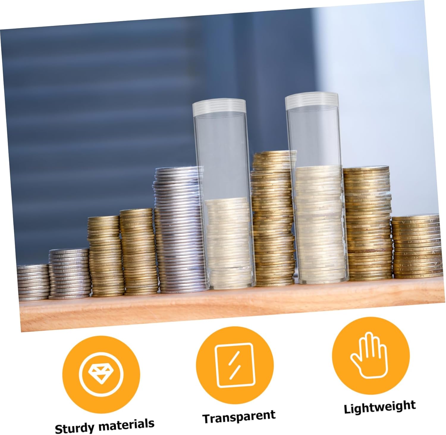 Buona organizzazione: questi tubi di stoccaggio forniscono un modo affidabile per organizzare e proteggere la tua collezione di monete, rendendo più semplice per i collezionisti gestire le proprie risorse in modo efficiente. Distributore di monete, piccolo portamonete in plastica Utilizzo versatile: questi tubi di stoccaggio sono ideali non solo per gli amanti delle monete, ma anche per la vendita al dettaglio, come mostra di souvenir o come confezione regalo e soddisfano diverse esigenze. Scatole portamonete per collezionisti di monete, tubi portamonete Soluzione salvaspazio: il design sottile di questi tubi portamonete consente un uso efficiente dello spazio, consentendo loro di essere facilmente riposti in cassetti, scaffali o vetrine senza occupare molto spazio, supporto per la raccolta monete, accessori per la raccolta monete Manipolazione sicura delle monete: i tappi sigillati aiutano a prevenire fuoriuscite accidentali e conservare le monete in modo sicuro, rendendo il trasporto e la gestione della collezione di monete più sicuri, portamonete rotondi in plastica, tubo portamonete trasparente Conservazione leggera: questi tubi portamonete sono leggeri ma robusti, rendendoli una scelta pratica per collezionisti che viaggiano spesso o partecipano a mostre di monete, deposito di collezioni di monete, deposito di tubi per monete