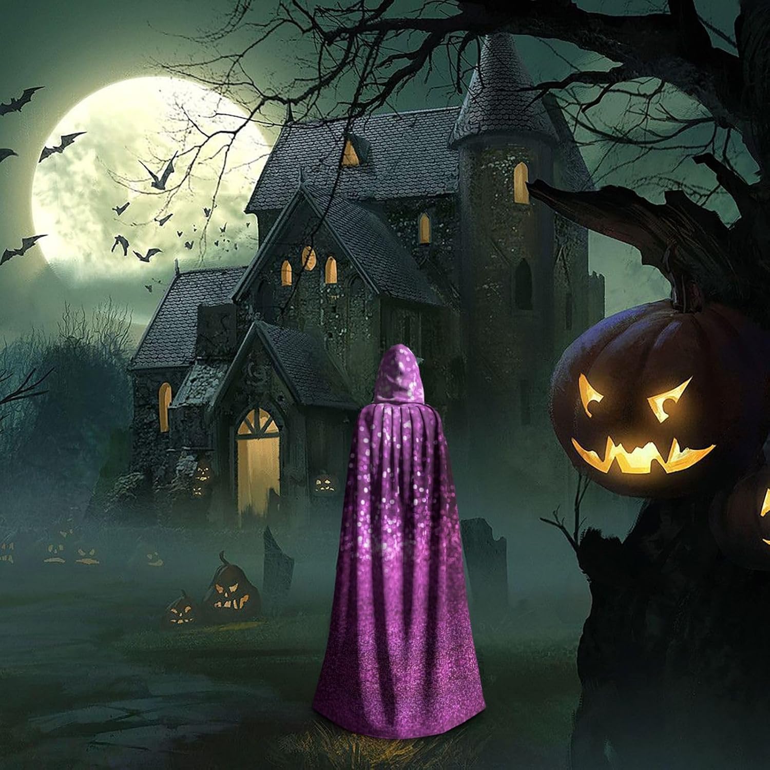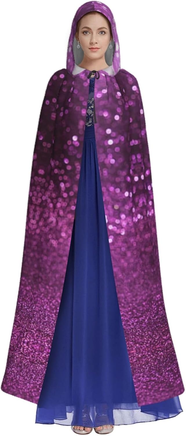 Il mantello con cappuccio per Halloween è realizzato con tessuto in poliestere morbido anche sulla pelle, prevenendo qualsiasi irritazione. Il mantello presenta un ampio cappuccio e uno stile annodato senza cerniere per un design sofisticato ed elegante. Con la sua dimensione universale, offre una copertura completa, adatta a tutti, assicurandoti di distinguerti tra la folla. Questo scintillante mantello viola glitterato non è solo per Halloween; è abbastanza versatile per cosplay, spettacoli teatrali, balli in maschera, feste a tema e molto altro ancora.