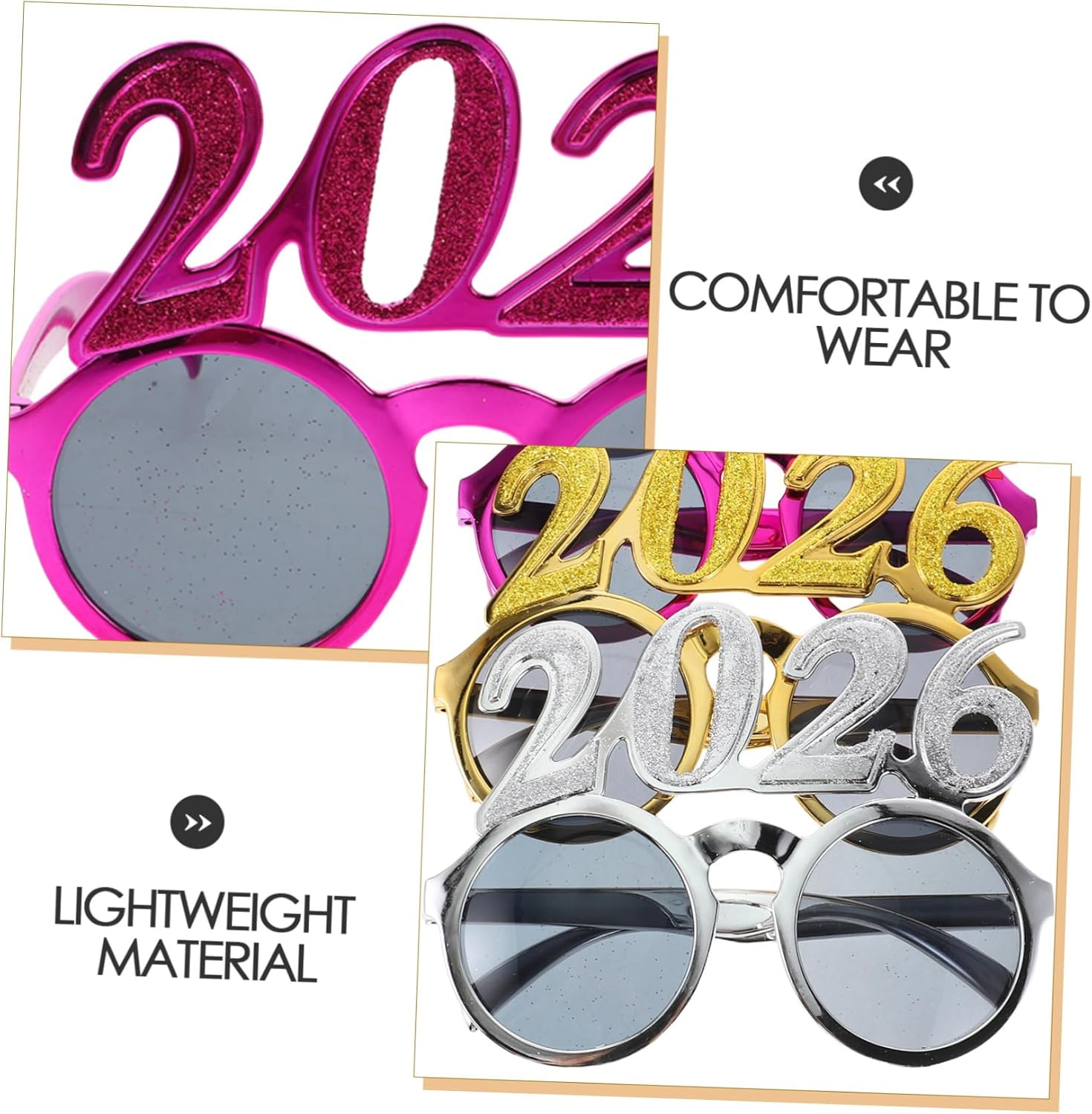 Divertimento portatile: facili da trasportare e condividere, questi occhiali rendono semplice per tutti godersi l'emozione del conto alla rovescia del nuovo anno, occhiali da laurea, occhiali da festa con numeri Pronti per la foto: questi occhiali stravaganti sono perfetti per renderti il punto focale di ogni foto, assicurandoti di catturare momenti indimenticabili del nuovo anno, occhiali da sole originali 2026, oggetti di scena per foto di capodanno 2026 Comfort leggero: realizzati con materiali leggeri, questi occhiali offrono una vestibilità comoda, perfetti da indossare durante tutta la festa, occhiali da sole per il nuovo anno, occhiali per il felice anno nuovo Design festivo: occhiali per il capodanno 2026, occhiali per la laurea 2026, occhiali con numeri glitterati, forniture per feste di capodanno, questi occhiali con numeri 2026 sono progettati per aggiungere un'atmosfera festosa e divertente alla tua festa di capodanno, rendendola più piacevole, occhiali per la vigilia di capodanno, bomboniere per la festa di capodanno Adatto a tutti gli eventi: che si tratti di una riunione di famiglia o di una festa tra amici, questi sono abbastanza versatili da valorizzare qualsiasi celebrazione progettata con un tema di capodanno, questi sono fantastiche decorazioni per feste di capodanno, feste di natale, carnevali, giochi di ruolo, feste in maschera, compleanni e capodanno, da sole 2026, da con numero 2026