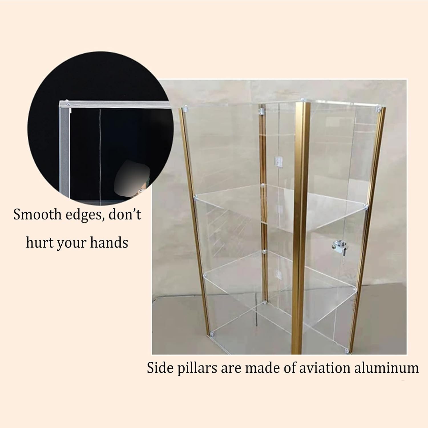 Materiale acrilico: è realizzato in lastra acrilica polimerica trasparente e telaio in alluminio in acciaio inossidabile. Il pannello è cristallino, impermeabile, facile da pulire, resistente ai graffi, resistente ai raggi UV, buona lucentezza, non facile da deformare e ingiallire. Elevata trasparenza: La copertura trasparente permette che il contenuto sia completamente visibile e la ricerca in superficie risulta scomoda. La trasmissione della luce è superiore al 95%, offrendoti un campo visivo chiaro a 360°, senza restrizioni visive. Protezione antipolvere: le scatole acriliche possono ripulire scrivanie disordinate e sono anche molto adatte per rendere eleganti la tua collezione e i tuoi cosmetici e proteggere i tuoi oggetti o modelli da polvere e odori, puliti e ordinati. Uso multifunzionale: questa scatola trasparente può essere utilizzata per esporre oggetti da collezione, bambole, giocattoli, modelli, figure, mattoncini, ecc. Può anche essere utilizzata per conservare articoli di cancelleria, cosmetici, profumi e altri oggetti. Design strutturale: design della struttura rettangolare, buona stabilità, non facile da ribaltare; design della porta con apertura laterale, con anello in cristallo, cerniera trasparente flessibile, facile da aprire e chiudere; con protezione del blocco, applicazione più sicura