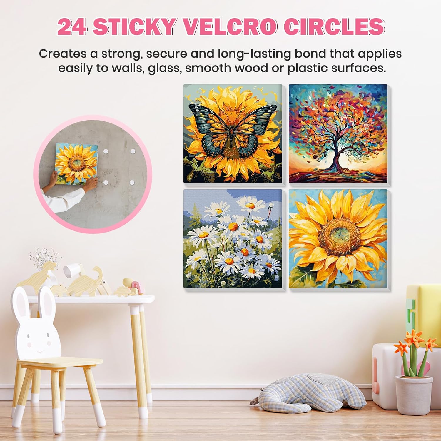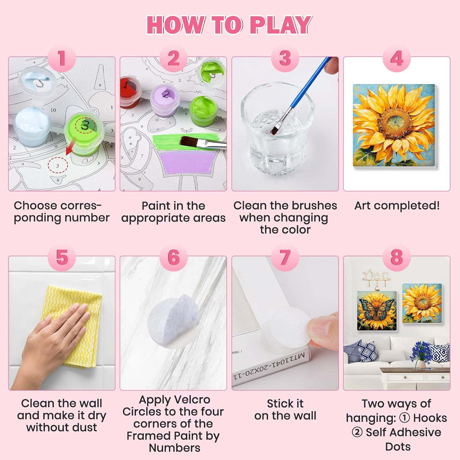 Lxmsja 4 Pezzi Fiore Dipingere con i Numeri Adulti Con Cornice, Girasole Paint by Numbers Kit Principianti Con 3 Penne, Hobby Creativi Adulti Idee Regalo Donna Decorazioni Casa - 20x20cm