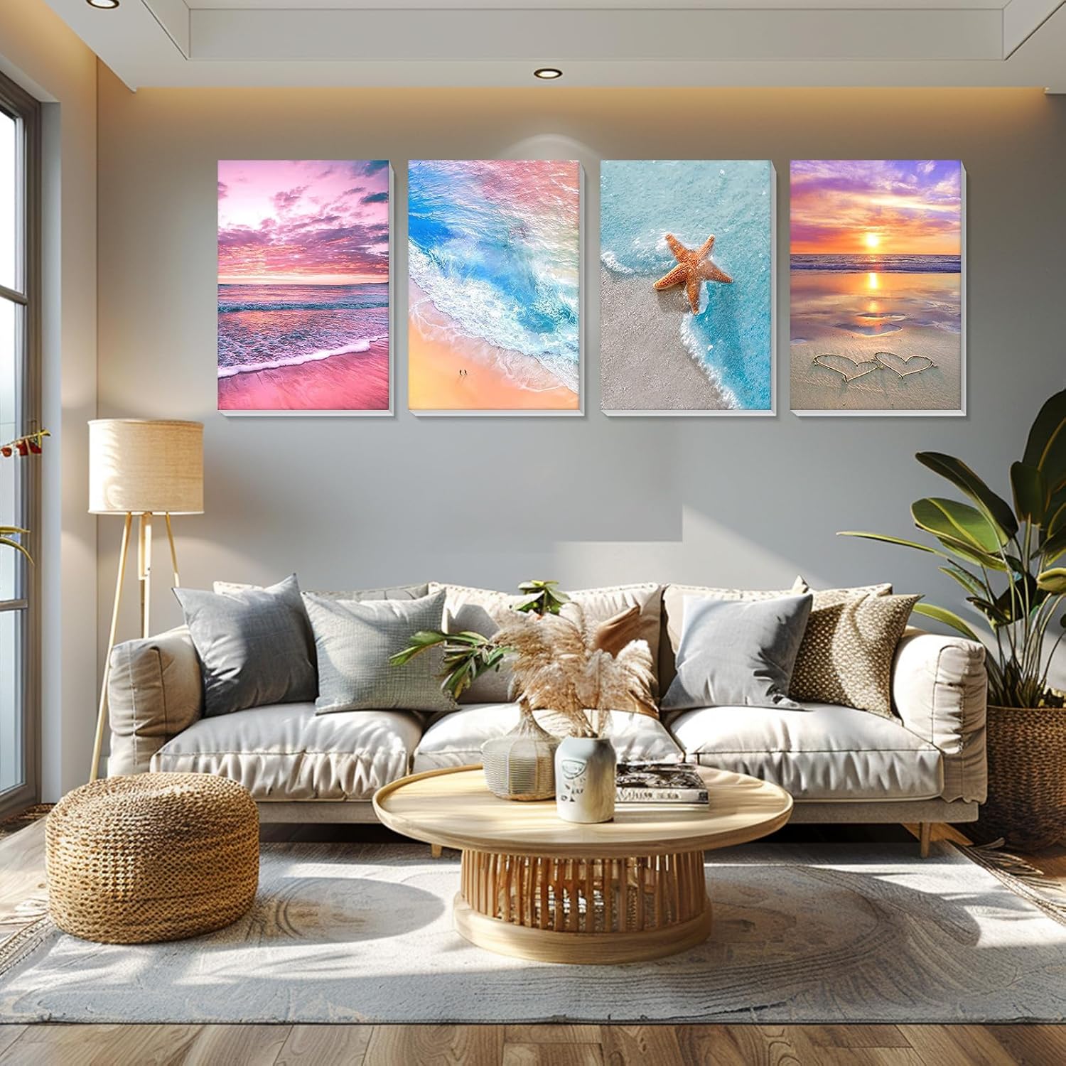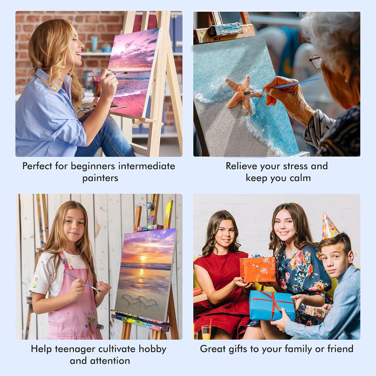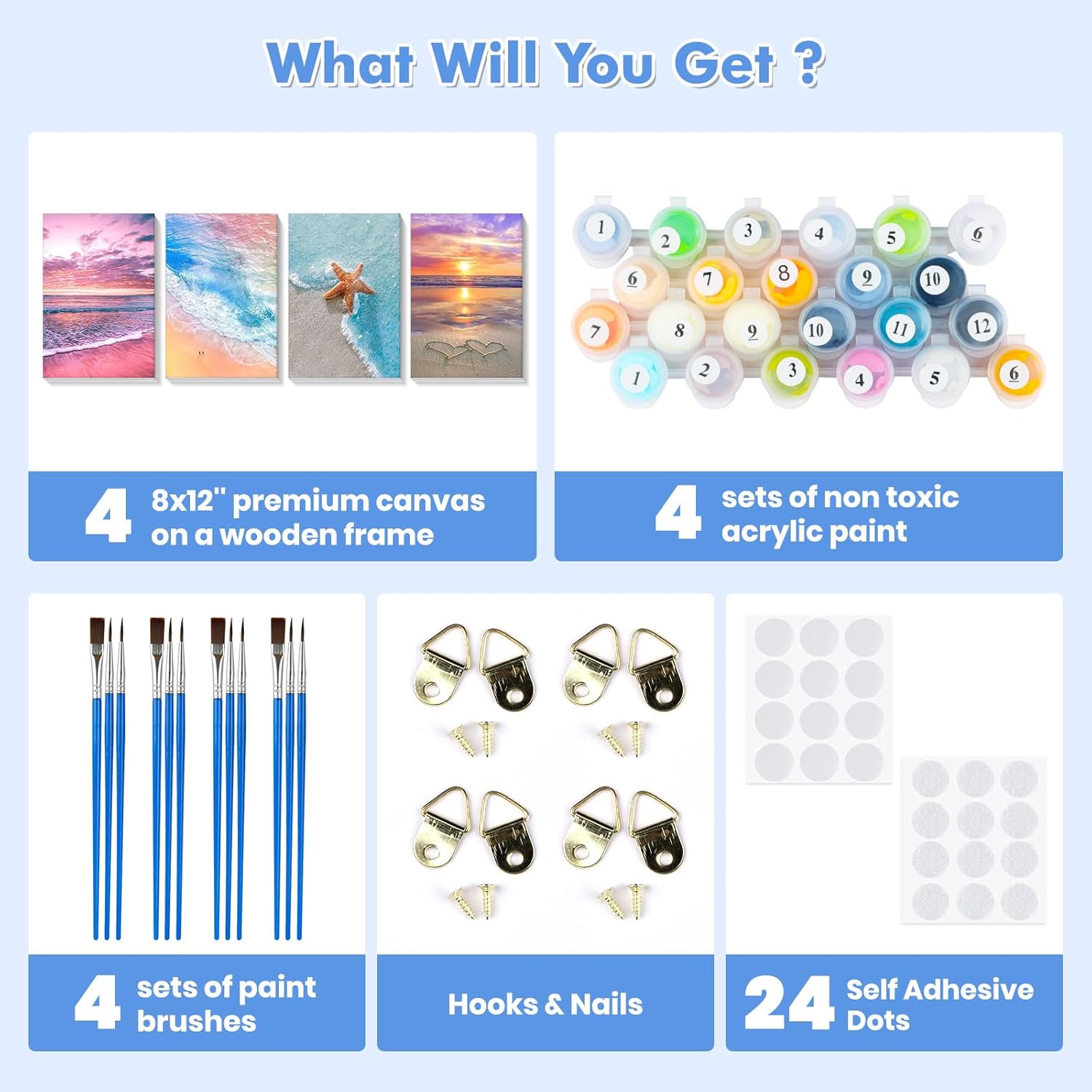 Lxmsja 4 Pezzi Paesaggio Dipingere con i Numeri Adulti Con Cornice, Mare Paint by Numbers Kit Principianti Con 3 Penne, Hobby Creativi Adulti Idee Regalo Donna Decorazioni Casa, 20x30cm