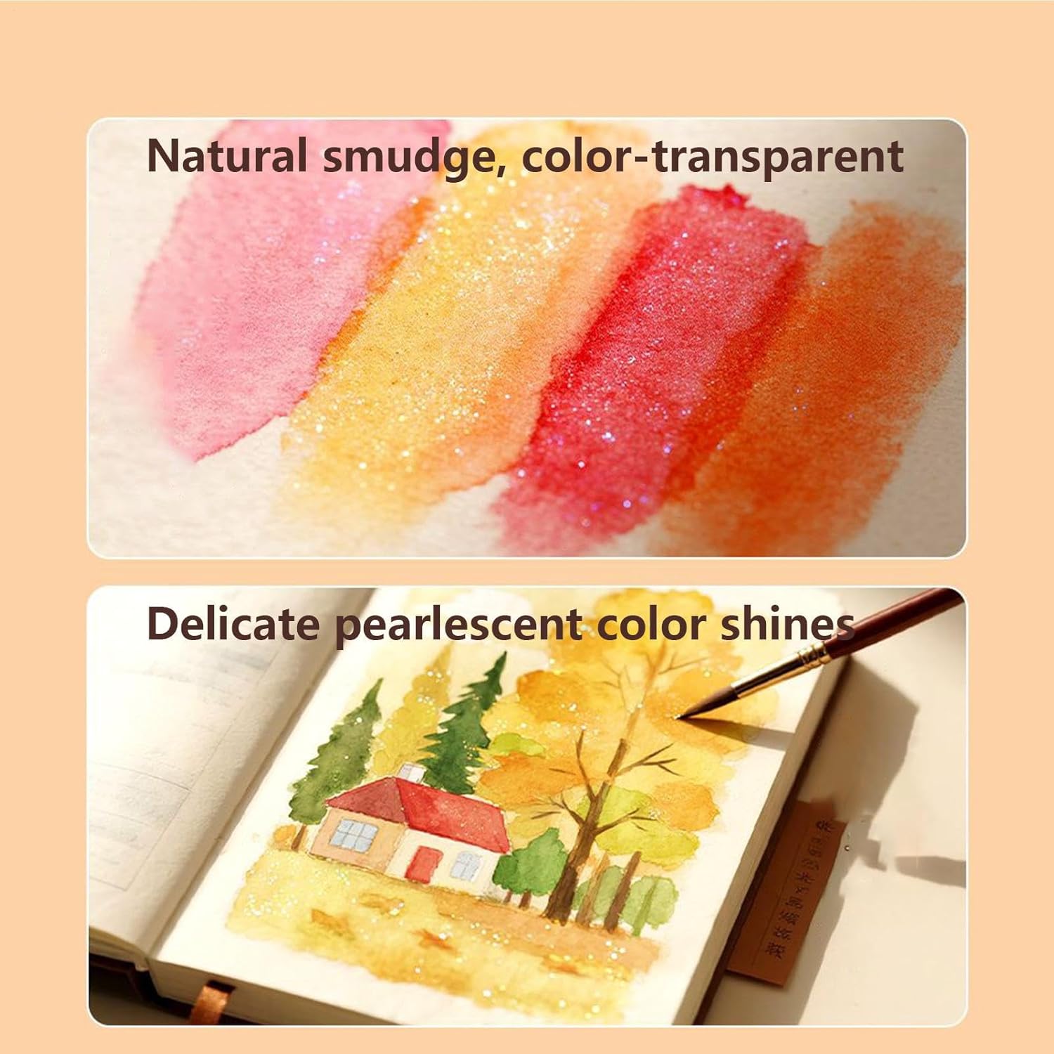 Impiego Diffuso: I colori ad acqua funzionano come affidabile strumento artistico per aula, consentendo applicazione senza sforzo per graffiti di viaggio e schizzi all'aperto, favorendo creatività in ambienti come caffè, garantendo versatilità per uso artistico educativo e informale Regalo Ideale: Questo set di colori a tempera è la scelta perfetta per le feste, permette ai bambini di esplorare il loro lato artistico con ore di divertimento coinvolgente, ideale per occasioni speciali come compleanni e celebrazioni stagionali Compatto e Leggero: Le dimensioni ridotte e il peso contenuto del set di acquerelli per adulti lo rendono per zaini e borse, garantendo trasporto senza sforzo e massima portabilità per dipingere ovunque si desideri, come parchi, caffè o all'aria aperta, mantenendo tutti gli strumenti organizzati e pronti all'uso Effetti Cromatici: La fusione di elementi perlati e opachi genera profondità visiva stratificata, facilitando la creazione di paesaggi vibranti e design intricati. Ideale per artisti che cercano effetti avanzati con pigmenti dalla resa coerente. Multifunzionalità: Questo set di acquarelli è ideale per colorare a mano e dipingere con tecniche ad , consentendo di creare biglietti d'auguri personalizzati, decorare journal e realizzare creative con precisione, stimolando la fantasia in molteplici progetti artistici quotidiani