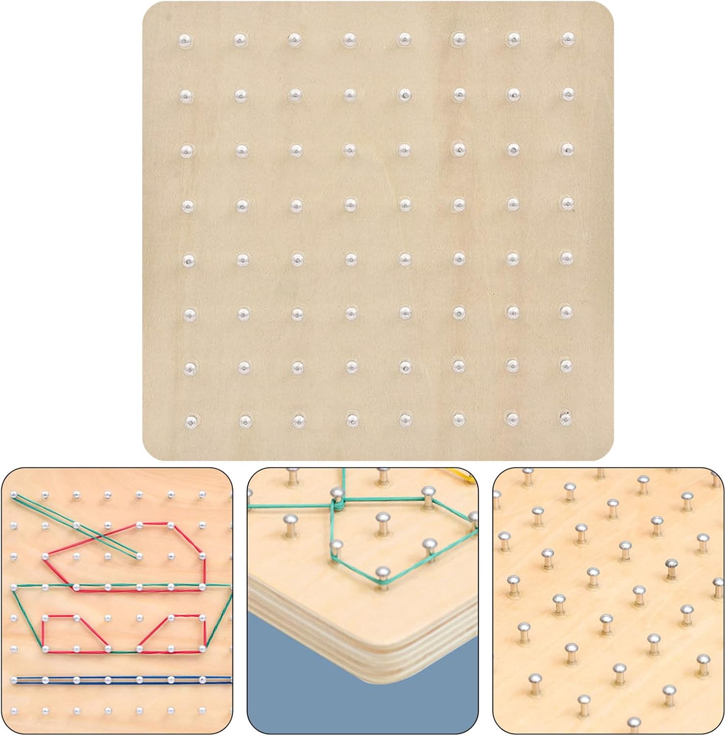 【Giocattolo sicuro】 Questo è un Geo Board For Classroom sicuro perché sono incorporati 64 chiodi rotondi, l'elastico è abbastanza forte e il design degli angoli arrotondati garantisce un tocco sicuro 【Miglioramento delle capacità motorie fini】 Costruisci forme diverse sui Geoboard con elastici in base alle carte , in modo da coltivare le capacità motorie dei bambini e la coordinazione occhio-mano 【Giocattoli per la prima educazione】Poiché Geo Board Set può costruire abilità di differenza di colore e dimensioni nelle forme e aiutare i bambini a imparare a modellare e colorare, questo è un giocattolo per la prima educazione adatto a bambini di età compresa tra 3 e 6 anni, 【Informazioni sulle forme geometriche astratte】 TheRubber Band Board è progettato per avere forme geometriche astratte davanti e dietro. La giustapposizione deliberata aiuta i bambini a sviluppare il pensiero geometrico astratto 【Molti usi】 Geoboard in legno ha una vasta gamma di conoscenze di apprendimento, oltre all'apprendimento della geometria in età prescolare, una varietà di oggetti diversi può aiutare i bambini a imparare il vocabolario di oggetti di uso quotidiano, come animali, veicoli, verdure, ecc.