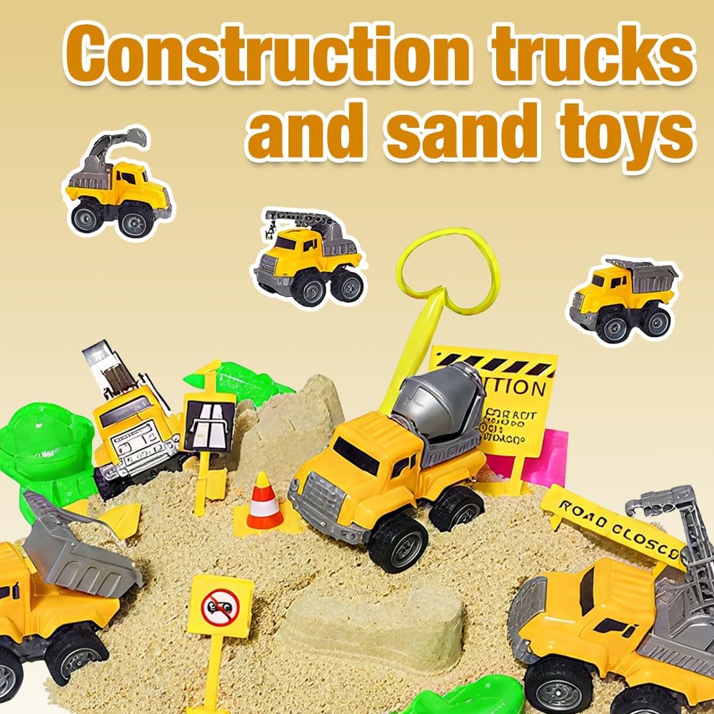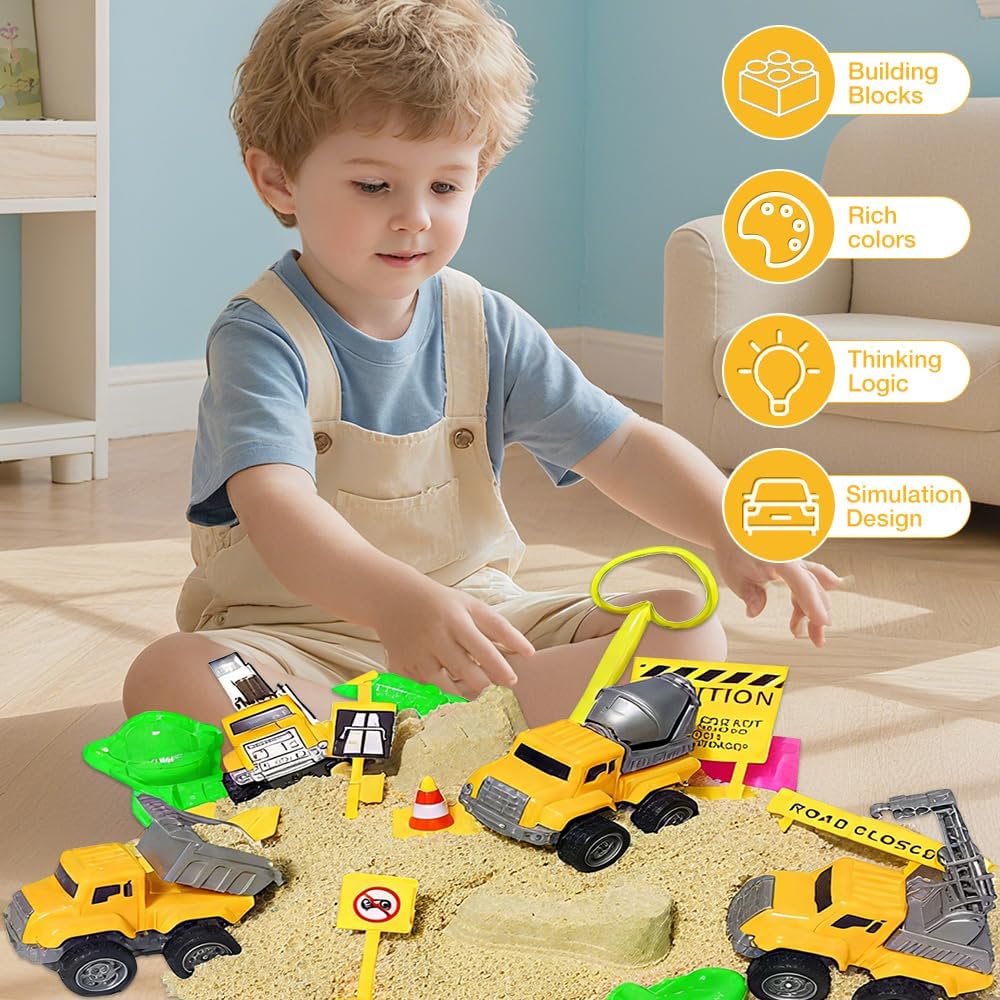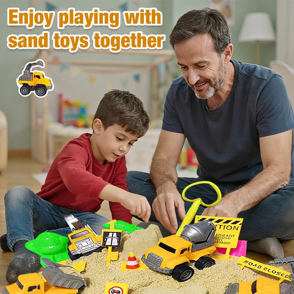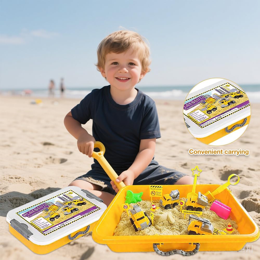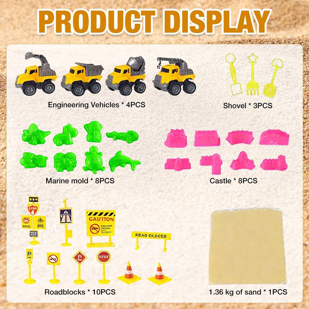 【Kit di Sabbia con Sabbia Magica】Questo sabbia cinetica bambini disponibile in una valigetta portatile, contenente 1,36 kg di sabbia, 3 pale, 8 stampi per castelli, 8 stampi per oceani, 10 blocchi stradali e 4 veicoli da costruzione. Con questo set completo di giocattoli per bambini, il tuo piccolo ingegnere potrà giocare per ore nel suo cantiere. 【Sabbia Morbida e Sicura】La sabbia magica per bambini e sicura, atossica e innocua, e piacevole al tatto. È facile da modellare, non appiccicosa, non sbiadisce e può ispirare la creatività illimitata dei bambini. È adatta per uso interno ed esterno. Può migliorare l'interazione genitore-figlio in famiglia e permettere ai bambini di vivere avventure in spiaggia sicure, creative e divertenti! 【Facile da Pulire e Riporre】Temi che tuo figlio possa sporcare giocando con la sabbia in casa? I nostri giocattoli con sabbia magica per bambini dotati di un contenitore, comodo per i bambini che giocano con la sabbia in casa, facile da riporre e da pulire. Il contenitore è anche comodo da trasportare, quindi non devi preoccuparti di perdere oggetti. 【Giocattolo Educativo Ideale per bambini】 Sabbia magica per bambini anche un ottimo giocattolo educativo. I bambini possono giocare al ruolo di un operaio edile e apprendere abilità di costruzione allo stesso tempo. Può migliorare la coordinazione occhio-mano dei bambini, allenare le loro capacità di pensiero, accrescere la loro immaginazione e promuovere il lavoro di squadra. Questo può anche ridurre il tempo che i bambini trascorrono utilizzando dispositivi elettronici e proteggere i loro occhi. 【Scelta Regalo Perfetta】 Questo è un regalo perfetto per i bambini che amano i giocattoli di costruzione, che può tenerli impegnati nell'apprendimento, nella finzione e nella creazione - qualcosa che piace anche ai genitori. I tuoi bambini adoreranno questo sabbia magica per bambini! Questo giocattolo di costruzione è adatto a giocattoli per bambini dai 3 anni in su.