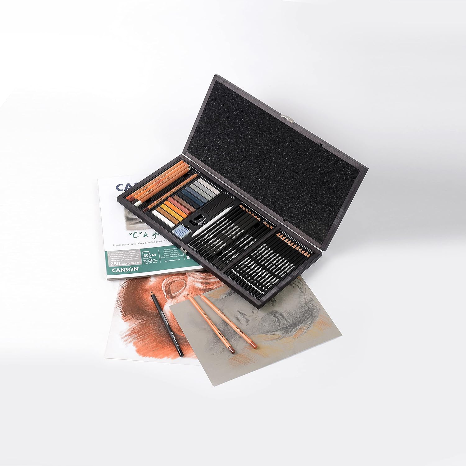 Set da disegno con una selezione equilibrata di matite da disegno monocromatiche 18 matite monocromatiche, 12 matite in grafite, 12 pastelli, 5 accessori Ideale per dipingere ritratti, paesaggi e act painting Made in Germany