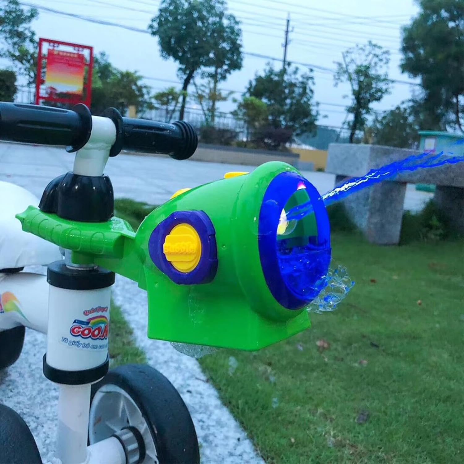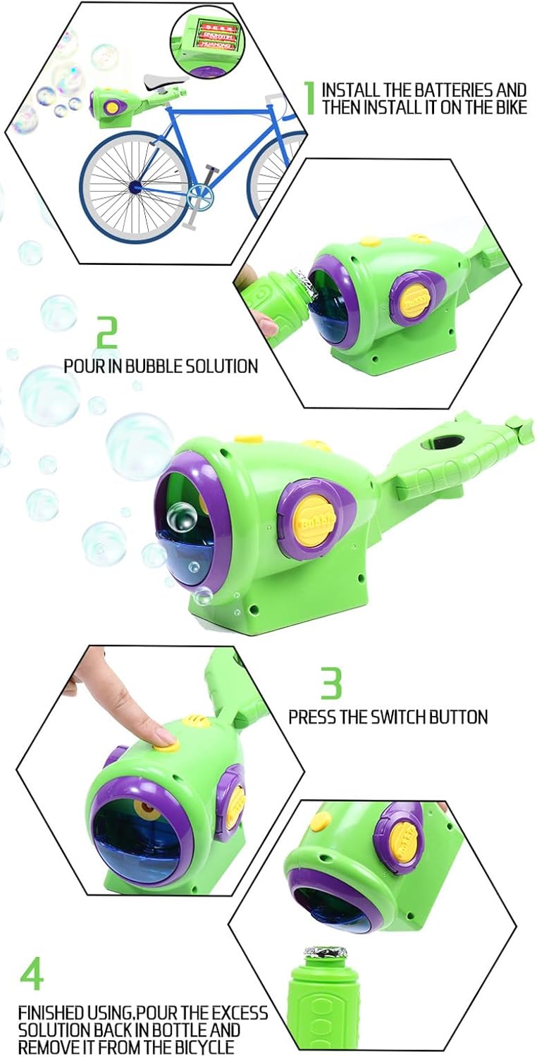 Leggero e facile da trasportare. Molto adatto per prati all'aperto, giardini e altri luoghi Facile da usare: versare acqua bolla nella macchina a bolle, premere gli interruttori e godersi il tempo della bolla La macchina a bolle può essere fissata sulla bici, rendendo il tuo viaggio in bicicletta più divertente I design innovativi della macchina a bolle e la bolla colorata soddisfano anche le preferenze dei bambini e attirano la loro attenzione Questa macchina a bolle è fatta di e non ha perdite o traboccano design