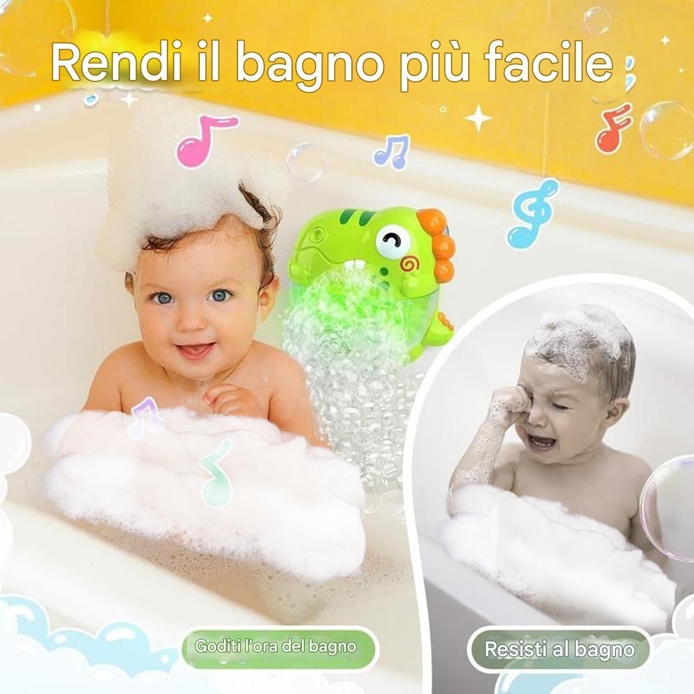 Stimolazione Sensoriale Completa: Scopri modalità versatili, tra cui luci fresche con suoni, funzionalità solo luci e impostazioni luci più musica, create per offrire un'arricchente stimolazione sensoriale durante il bagnetto. Qualità Affidabile: Prodotto realizzato in ABS premium con spessori controllati, garantisce integrità strutturale nel anche con uso frequente in ambienti umidi Compagno interattivo: per la fascia 1-3 anni, questo giocattolo da bagno con bolle aggiornato cattura l'attenzione dei bimbi con colori accesi e la forma di dinosauro, incoraggiando l'esplorazione sensoriale e il gioco immaginativo Scelta Regalo: Celebra occasioni speciali come compleanni o Natale con giocattoli da bagno progettati per rendere piacevole il momento vasca, creando ricordi indimenticabili per l'infanzia Maneggevolezza: Grazie al controllo a un pulsante, pompa 'aria removibile e membrana impermeabile, questo giocattolo da bagno assicura prestazioni affidabili con facilità d'impiego