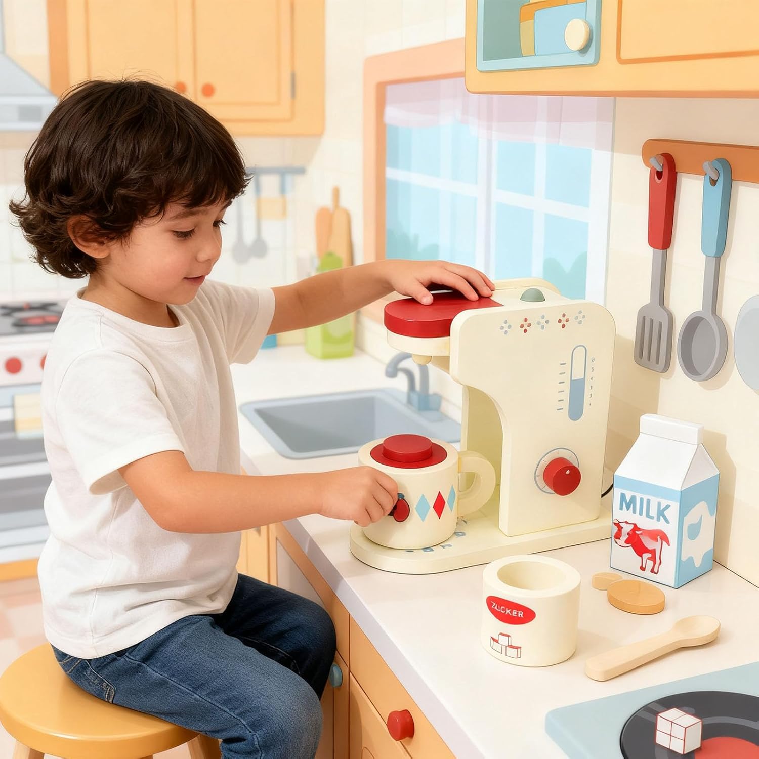 Design realistico: la caffettiera giocattolo per bambini in legno presenta un design realistico, consentendo ai bambini di provare la gioia di preparare il caffè, stimolando la loro immaginazione e creatività durante il gioco. Materiale in legno sicuro: realizzato in legno di alta qualità, questo giocattolo per caffettiera è sicuro e affidabile, rendendolo adatto a ragazzi e ragazze dai 3 anni in su, garantendo tranquillità ai genitori. Set da cucina: come parte di un set da cucina, la caffettiera giocattolo in legno per bambini stimola la creatività e l'immaginazione dei bambini, incoraggiandoli a impegnarsi in scenari di gioco di ruolo divertenti e interattivi. Regali di compleanno ideali: questa macchina da caffè giocattolo in legno è una scelta eccellente per i regali di compleanno, aggiungendo ulteriore gioia alle occasioni speciali e sorprendendo i volti dei bambini nel loro giorno speciale. Migliora le capacità motorie: il giocattolo migliora le capacità manuali e la coordinazione dei bambini, promuovendo le interazioni genitore-figlio e rendendo il tempo di gioco una preziosa opportunità di apprendimento e legame.