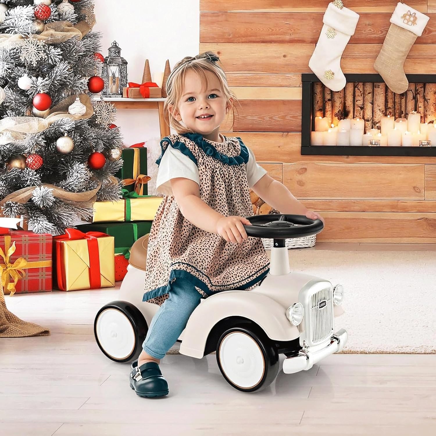 Questo giocattolo cavalcabile ha un aspetto classico e un clacson ad aria compressa sul volante, che regala un divertimento senza fine ai bambini. Il passeggino for bambini è dotato di un volante con angolo di sicurezza di 40° for evitare cadute laterali e garantire la sicurezza del bambino. Può sostenere un peso massimo di 25 kg. Questo passeggino for bambini a spinta è dotato di uno spazio nascosto sotto il sedile for riporre giocattoli e snack, consentendoti di avere le mani libere quando esci. Questo giocattolo for bambini è dotato di 4 ruote silenziose e larghe, antiscivolo, resistenti all'usura e adatte al pavimento. I bambini possono usarlo sia all'interno che all'esterno. Questa macchinina giocattolo può aiutare i bambini a sviluppare la coordinazione, il senso dell'orientamento e l'equilibrio mentre giocano, allenando il corpo e divertendosi.
