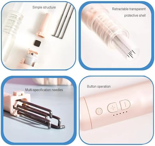 Aghi elettrici da infilare: Caratterizzato da un design a 5 velocità, questo ago elettrico da poking soddisfa varie esigenze di produzione. A differenza delle alternative manuali, automatizza il processo di puntura per una produzione di feltro di lana significativamente più veloce. Configurazione multi-ago: questo strumento per infeltrimento ad ago vanta 5 fori per aghi, consentendo il funzionamento simultaneo di 5 aghi. Questa configurazione espande l'area del poke e migliora l'efficienza produttiva. Protezione delle dita: progettato con una copertura protettiva, questo strumento protegge le dita da lesioni accidentali con ago, garantendo un'esperienza di lavorazione più sicura. Buona stabilità: lo strumento di puntura mantiene una frequenza e una forza di pugnalatura costanti, facilitando la creazione di opere più uniformi e ben strutturate. Comodo: dopo una carica completa, puoi iniziare a creare immediatamente senza essere legato da fili. Questa pistola elettrica per infeltrimento ad ago ti consente di produrre bellissime creazioni artistiche in feltro senza sforzo.