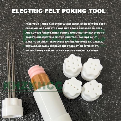 Strumento elettrico in feltro: dite addio alle dita doloranti e ai progressi lenti con il nostro strumento elettrico per colpire il feltro. Semplifica il processo creativo e aumenta notevolmente l'efficienza produttiva, aiutandoti a dare vita alle tue idee creative più velocemente. Creazione efficiente e risparmio di tempo: alimentato da un motore, questo strumento elettrico di puntura in feltro offre azioni di puntura ad alta frequenza al minuto, incollando rapidamente le fibre di lana e riducendo drasticamente i tempi di stampaggio. Che si tratti di piccoli ciondoli o intricati ornamenti grandi, sperimenterai un notevole aumento della creatività e dell'efficienza. Controllo preciso per lavori dettagliati: Progettato con un'impugnatura ergonomica per il massimo comfort, questo strumento riduce al minimo l'affaticamento durante l'uso prolungato. È possibile regolare facilmente la velocità del motore per controllare la forza e la frequenza dell'ago di puntura, adattandolo a diversi tipi di lana e requisiti di progetto senza problemi. Sicurezza e affidabilità: l'ago in acciaio inossidabile è affilato, dotato di un dispositivo di protezione di sicurezza per evitare lesioni accidentali. Il motore è rigorosamente testato per un funzionamento stabile e silenzioso, permettendoti di concentrarti sui tuoi sforzi creativi in un ambiente calmo.