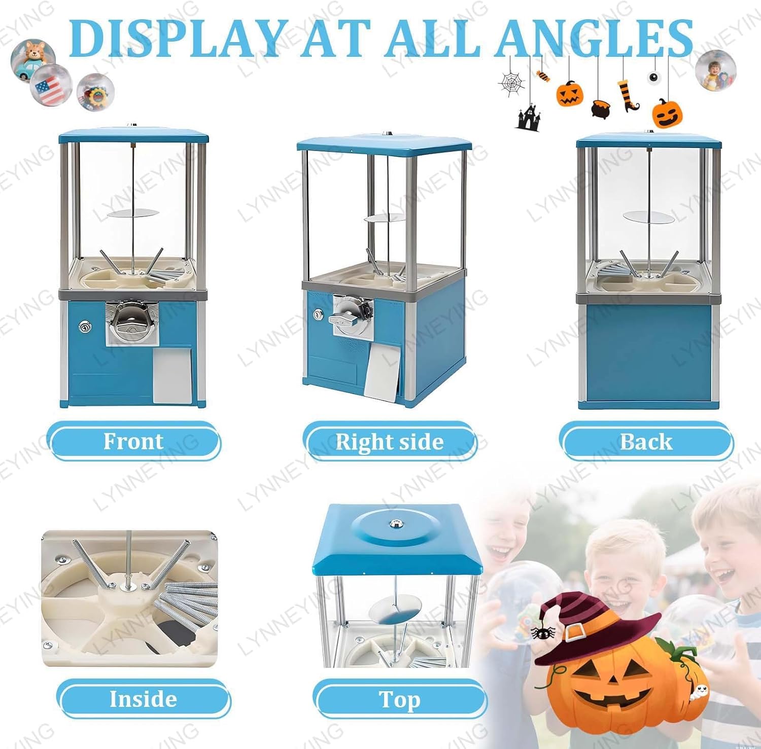🎃【DISPENSER DIVERTENTE PER HALLOWEEN】La macchina Gashapon è incredibilmente facile da usare: basta inserire 1-4 monete (l'impostazione predefinita accetta quarti statunitensi, personalizzabile per altre valute) e ruotare la manopola di 360° per erogare giocattoli Gashapon (25-58 mm) o caramelle. Nessuna configurazione complicata: lascia che i bambini girino per ottenere caramelle o sorprese giocattolo! Un enorme successo alle feste di Halloween e più sicuro che andare di porta in porta. 🎃【ULTRA FORTE E DUREVOLE】 Realizzata in lega di zinco di alta qualità, questa macchina per caramelle gommose commerciale è robusta, infrangibile e resistente all'usura. La cupola della capsula ad alta trasparenza consente ai clienti di vedere i premi all'interno mantenendoli al sicuro. Anche a pieno carico, con oltre 150 giocattoli in capsule o 800-1000 pezzi, non si ribalterà: ideale per parchi divertimento affollati, centri commerciali e aree di intrattenimento per famiglie. 🎃【DESIGN AD ALTA SICUREZZA】Preoccupato per il furto? Questo distributore automatico di capsule è dotato di un doppio sistema di chiusura: una gettoniera sicura e una serratura superiore, accessibile solo con la chiave inclusa. Il telaio rotante consente una facile visualizzazione degli oggetti proteggendoli. Perfetto per luoghi non monitorati: i tuoi profitti e premi rimangono al sicuro da atti vandalici! 🎃【GRANDE CAPACITÀ】Con un design spazioso di 26x29x53 cm, questa macchina per gacha può contenere oltre 150 giocattoli in capsule (1,77 pollici) o 800-1000 pezzi, riducendo la necessità di rifornimento costante. La sua elevata capacità di stoccaggio lo rende ideale per luoghi ad alto traffico come sale giochi, cinema e negozi di giocattoli. Inoltre, la finestra trasparente evidenzia i prezzi, aumentando il coinvolgimento del cliente! 🎃【ATTRAENTE E VERSATILE - AUMENTA LE VENDITE!】Progettato nei vivaci colori blu/rosso/bianco/giallo/verde, questo distributore di caramelle crea un'atmosfera magica che attira bambini e adolescenti. Le sue dimensioni compatte (29x26 cm) si adattano agli spazi ristretti, mentre la sua capacità di carico di 7 kg garantisce stabilità. Decorazione spaventosa e attraente: riempila con occhi finti, mini-mostri, anelli spaventosi e caramelle per stupire i tuoi piccoli fantasmi ed elfi!