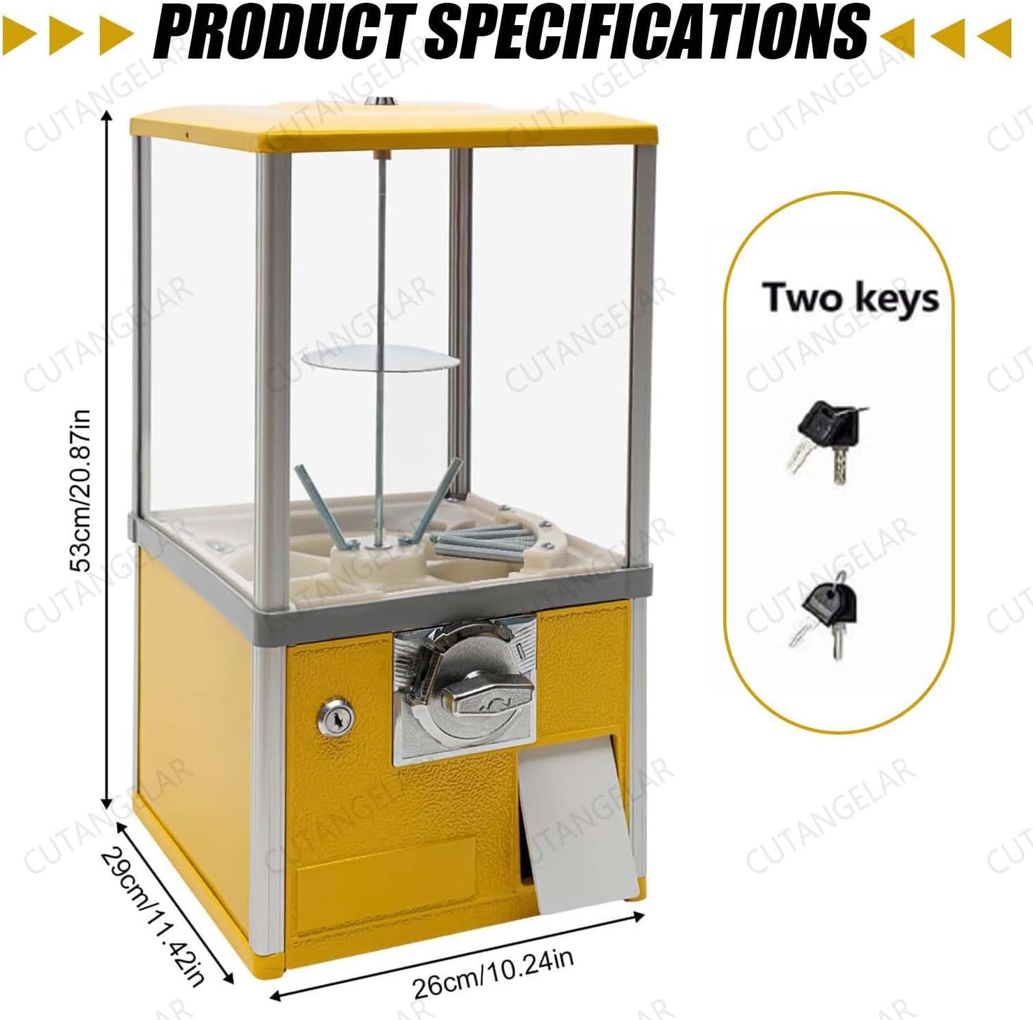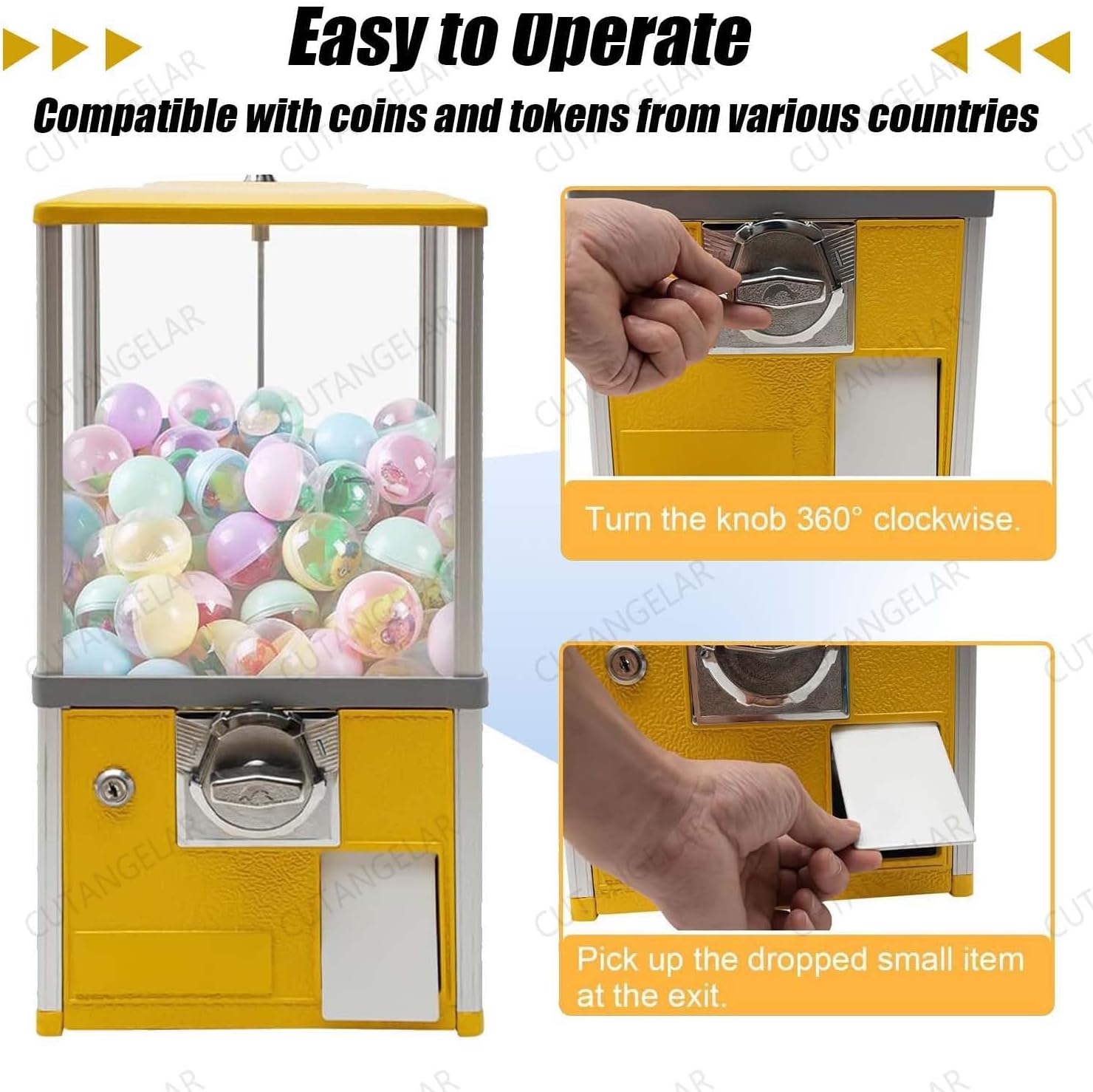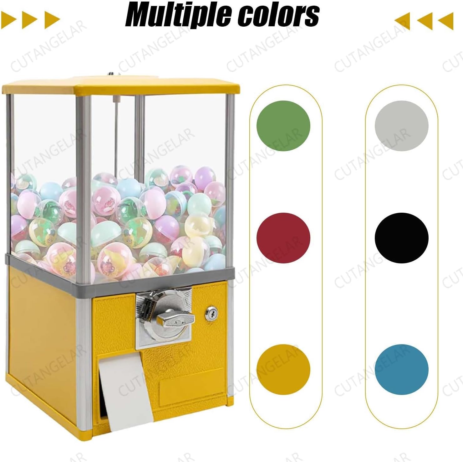 ⭐【Capacità ed Efficienza Professionale】: Questo distributore automatico commerciale ha una grande capacità di 26x29x53 cm, può ospitare 150 capsule standard da 4,8 cm o 200 capsule piccole da 4,3 cm ed è dotato di un salvadanaio che può contenere 800 monete. Progettato per luoghi ad alto traffico come centri commerciali e parchi divertimento. ⭐ 【Elevata sicurezza, robusto e durevole】: la macchina per capsule e caramelle, la gettoniera e la cassa principale adottano un sistema di chiusura a chiave per proteggere le entrate e le scorte. Il telaio rettangolare è realizzato in lega di zinco-alluminio rinforzata e materiale composito infrangibile ABS/Ps, supportando un carico di 7 kg. Il telaio ruota per visualizzare gli elementi. ⭐【Adattamento flessibile multi-valuta】: erogatore di monete, design internazionale con accettatore di monete personalizzabile (set per due monete da 25 centesimi). Accetta 1-4 pezzi (29-30 mm di diametro) provenienti da diversi paesi. Contattaci per regolare l'accettatore in base alla tua valuta, ideale per le zone turistiche. ⭐【Funzionamento meccanico a misura di bambino】: i mini distributori automatici funzionano senza elettricità o monitoraggio. Operazione in 3 passaggi (Inserimento parte → Ruota maniglia → Ricevi). Base Girevole a 360° Con Finestra Trasparente. Dispositivo Antiblocco e Anticaduta - Perfetto per i bambini. ⭐ 【Ampia gamma di usi, rendimento elevato】: distributore di caramelle portatile a distribuzione flessibile. Adatto a sale giochi, centri commerciali, negozi, ecc. È disponibile in sei colori vivaci (blu/rosso/giallo/verde/bianco/nero) che attira l'attenzione e aumenta le entrate.
