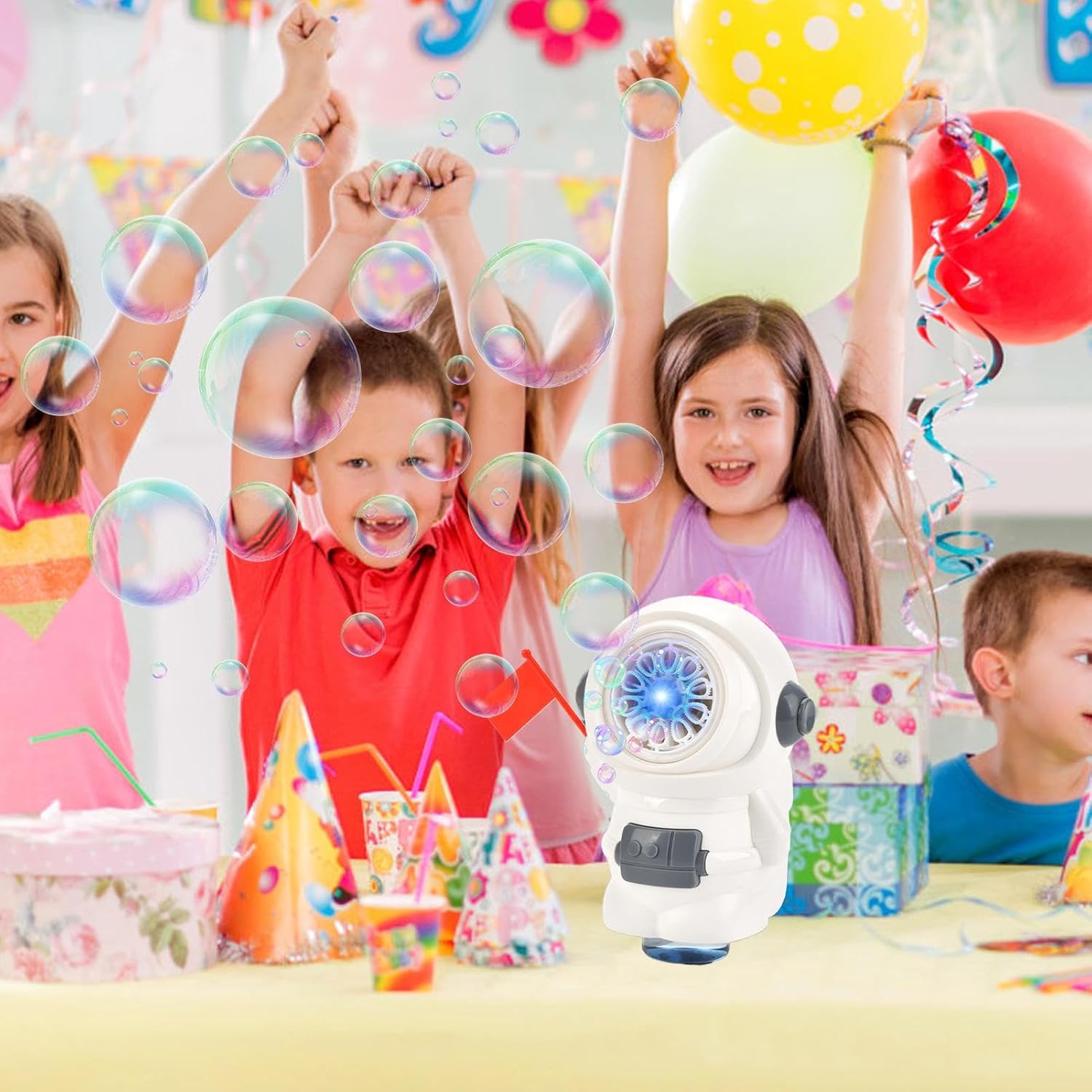 Ottima fattura: la macchina per le bolle ha un design a forma di astronauta che li incoraggia a esplorare, oltre a vivaci effetti di luce. Non è solo un giocattolo ma anche una caratteristica della decorazione della festa, soddisfacendo le esigenze delle celebrazioni di compleanno a tema spaziale. Lunga durata: questa macchina per bolle è realizzata in ABS di alta qualità e ha un telaio rinforzato che può sopravvivere a cadute inaspettate e ore di divertimento con le bolle. I genitori possono stare certi che potranno continuare a giocare all'aperto. Amichevole Amichevole: questo soffiatore di bolle è stato progettato per un divertimento senza sforzo; Tutto quello che devi fare è premere il pulsante per iniziare a creare bolle continuamente. I bambini possono maneggiare la ricca bolla, che migliora il divertimento delle attività all'aria aperta e promuove lo sviluppo delle capacità motorie. Comoda da portare: questa macchina per bolle è progettata con una maniglia adatta per un facile trasporto e movimentazione durante le uscite all'aperto. Perfetto per parchi, spiagge e viaggi in campeggio Varie applicazioni: la macchina per bolle è ideale per riunioni di famiglia, feste di compleanno e festival. Questa macchina per bolle è perfetta per uso interno ed esterno e garantisce un utilizzo sicuro e adatto durante la raccolta