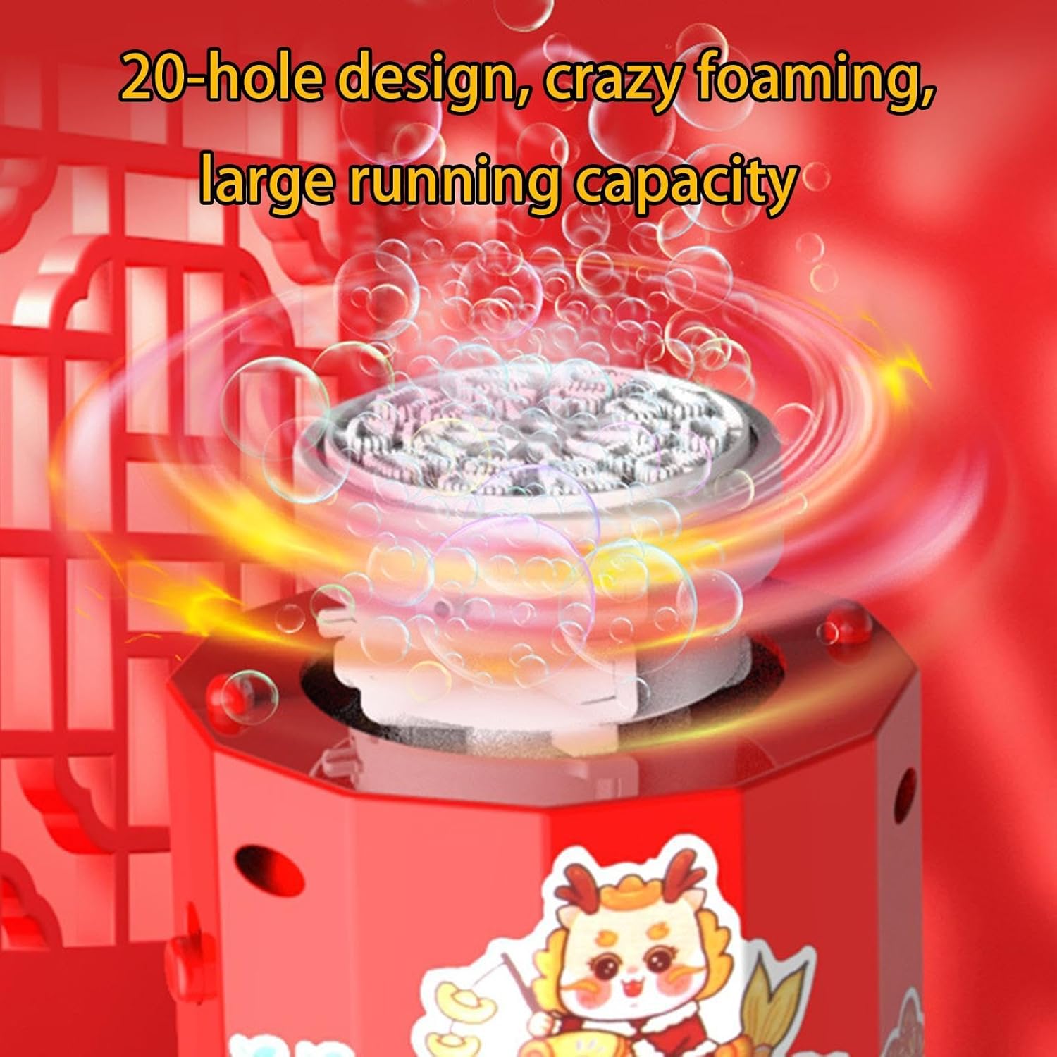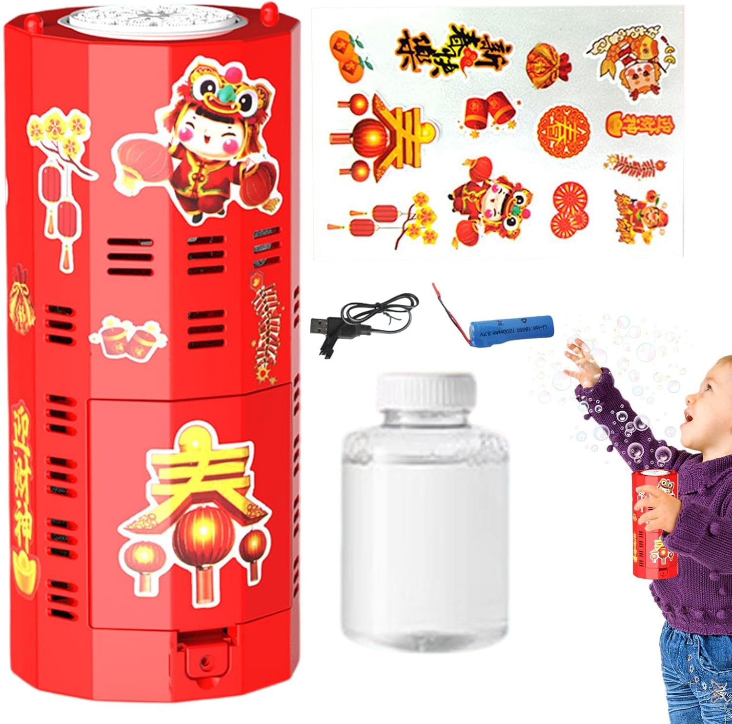 Ampie applicazioni: migliora le tue occasioni speciali con la nostra macchina per bolle di Capodanno. Adatto per festival, matrimoni, celebrazioni annuali e altro ancora. Le sue prestazioni semplici garantiscono un'atmosfera vivace e memorabile. Effetti sonori: la nostra macchina per bolle di Capodanno è l'accessorio perfetto per le feste, progettato per portare facilmente eccitazione ed eccitazione in ogni occasione con i suoi effetti sonori unici Prevenzione delle perdite: la nostra macchina per bolle di Capodanno cinese promette festeggiamenti con il suo design a prova di perdite, meticolosamente realizzato per evitare fuoriuscite o perdite. Provalo: sfrutta la modalità automatica per scatenare una serie di bolle accattivanti. Il nostro bocchettone per bolle è in grado di produrre migliaia di bolle in breve tempo, perfetto per il tuo divertimento senza fine. Utilizzo senza sforzo: porta un po' di gioia nella tua vita con il semplice utilizzo della nostra macchina per bolle di Capodanno. Crea più bolle e migliora facilmente qualsiasi celebrazione e lascia che i bei momenti passino