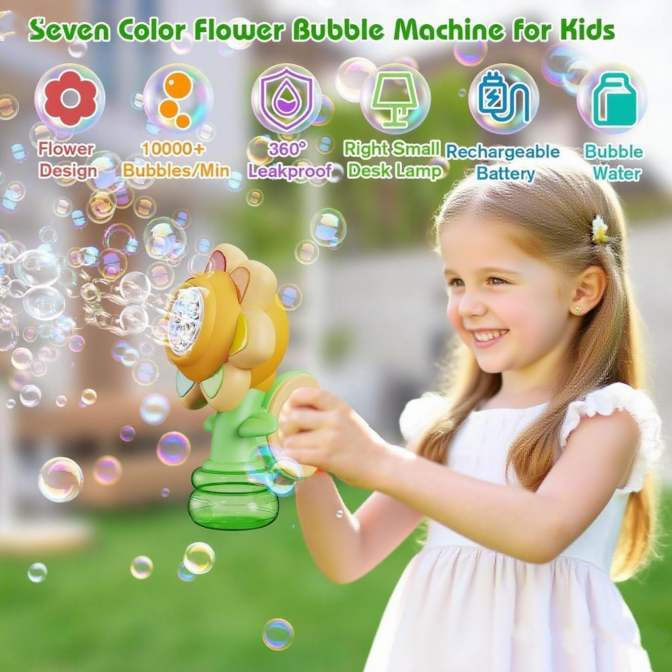 🌻【Modalità 3 in 1】Bolle + Scuotere la testa + Luci notturne: le allegre macchine per bolle di girasole scuotono la testa per spruzzare bolle, accompagnate da luci splendenti, creando un mondo da favola in cui luce e ombra si intrecciano; Bolle: spruzza bolle floreali in tutto il cielo; Modalità luce notturna: si trasforma in una luce notturna sul comodino! 🌻【Aspetto del girasole】La nostra macchina per bolle presenta petali colorati e una forma di girasole realistica. Sotto la luce tremolante, il girasole scosse la testa e continuò a sputare bolle di sapone. Il girasole ondeggiante sembrava un fiore magico vivente, e i bambini lo invocavano con entusiasmo. 🌻【Design con un clic】Basta premere l'interruttore e 10 fori per bolle faranno bolle contemporaneamente. L'allegro girasole può sputare oltre 10.000 bolle al minuto. Innumerevoli bolle cadono continuamente sul prato, trasformando il tuo giardino in un giardino da sogno per i bambini. 🌻【Materiale di sicurezza】Le nostre macchine per bolle sono realizzate in materiale ABS più avanzato, diverso dalla plastica fragile ed economica. È più resistente all'usura e durevole della plastica ordinaria, oltre che atossico e inodore. Ha inoltre superato numerosi test di sicurezza come EN71 e CPC per garantire la sicurezza dei bambini. 🌻【Con batteria + manico ad anello + pratico serbatoio della vescica】 È inclusa una batteria ricaricabile, quindi non è necessario acquistare batterie aggiuntive; La maniglia antiscivolo ad anello sul retro permette ai bambini di trasportare la macchina con una mano e di camminare liberamente; Il serbatoio della vescica mascherato da base per vaso di fiori consente un facile riempimento.