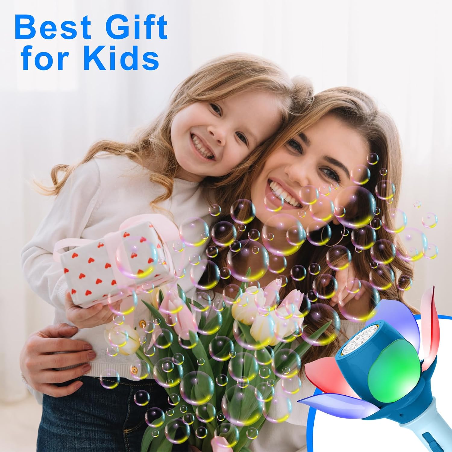 Design unico: questa macchina per bolle a forma di fiore di loto si apre. Accendi l'interruttore e il fiore di loto si aprirà. Luci colorate si spengono e i bambini possono giocare in un mondo di bolle da sogno. Bacchetta per bolle ricaricabile: questa macchina per bolle elettrica non richiede più batterie. Ricarica semplicemente tramite un cavo USB: più comodo ed economico. 120 ml di liquido per bolle garantiscono un divertimento senza limiti. Più divertimento con le bolle: la bacchetta elettrica per bolle ha 10 uscite per bolle. Basta premere il pulsante e spruzzerai oltre 10.000 bolle di sapone colorate al minuto. Le innumerevoli bolle di sapone trasportano i tuoi bambini in un mondo allegro e colorato. Quando il tuo bambino agita la bacchetta magica, bolle di sapone colorate fluttuano nell'aria e aprono un mondo di bolle da sogno. Completamente attrezzato: la confezione include una bacchetta per bolle di loto, liquido per bolle e batterie ricaricabili, che possono essere utilizzate immediatamente senza altri accessori. Questa macchina automatica per bolle è completamente a prova di perdite, quindi i bambini non devono preoccuparsi che il liquido delle bolle possa finire sulle loro mani o sui vestiti sporchi durante l'uso. Altri usi: la squisita macchina per bolle è un regalo ideale per i bambini. I bambini possono portare questa bacchetta magica automatica in giardino, nel parco giochi o in qualsiasi altro posto per giocare con gli amici, fare amicizia o divertirsi con le bolle con la famiglia. Garantisce inoltre un divertimento senza fine e un'atmosfera piacevole durante feste di compleanno, matrimoni, terrazze, spiagge, giochi in piscina, campeggio e altre attività all'aperto.