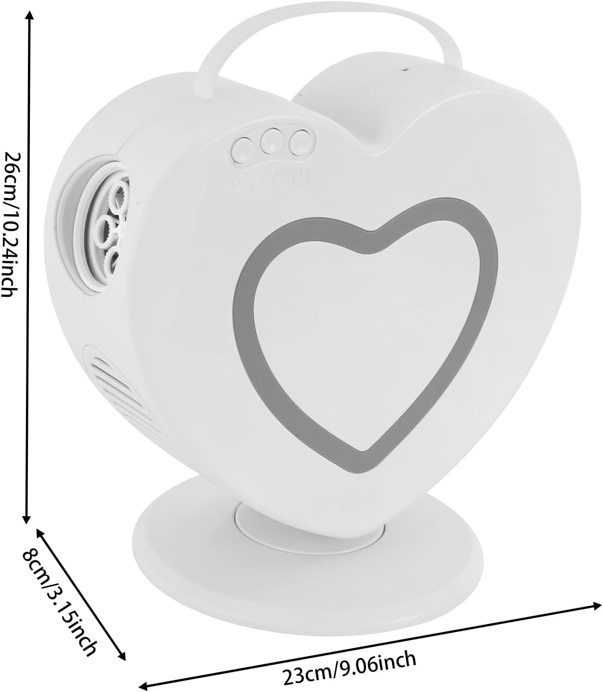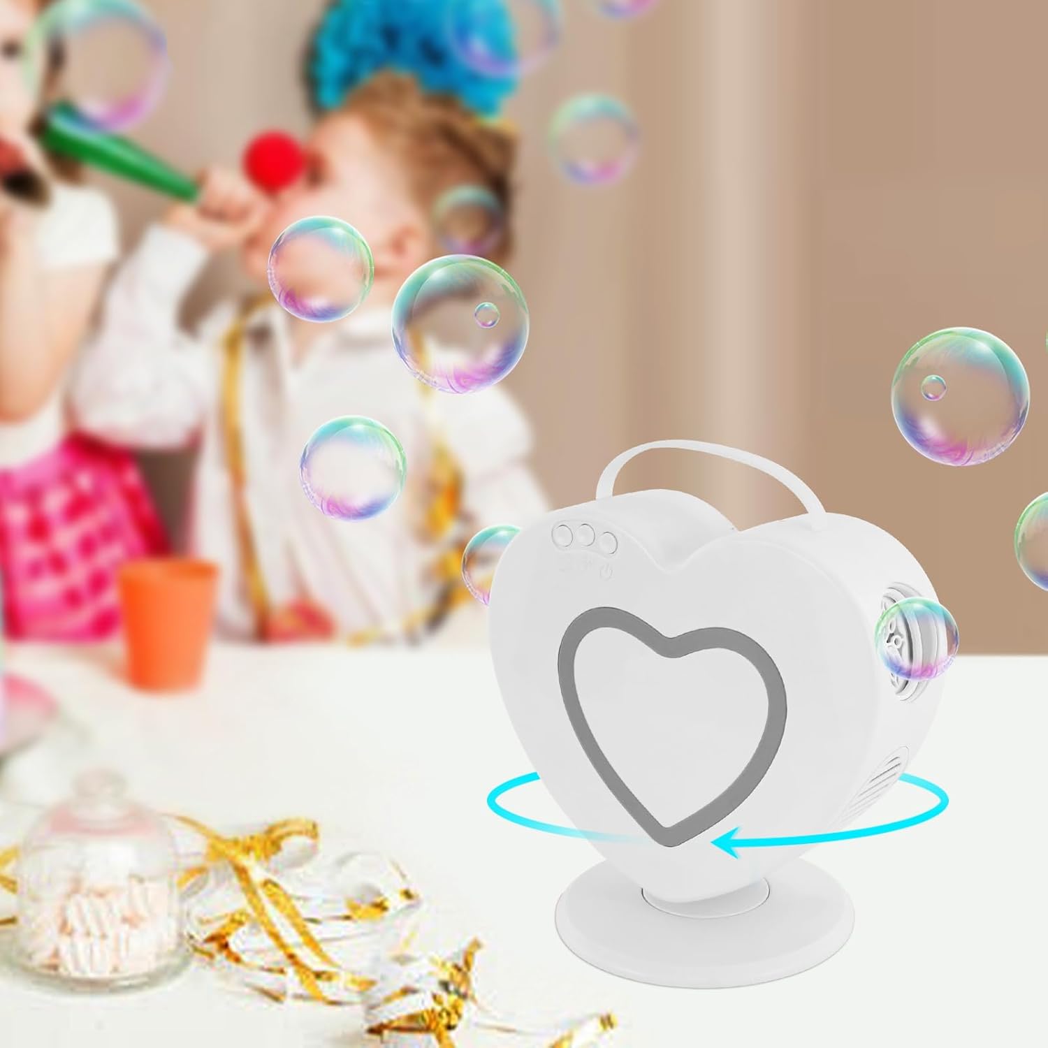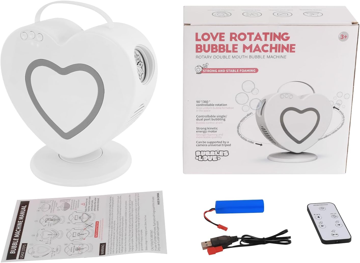 Doppio telecomando/controllo tramite pulsante: supporta sia una modalità di rotazione a 360° che una modalità di spruzzo target a 90° che può essere facilmente commutata utilizzando i pulsanti sul corpo o il telecomando incluso. Portata ca. 5-8 metri. Efficiente formazione di bolle con due uscite: presenta un design con due uscite che possono essere azionate simultaneamente o indipendentemente e producono abbondanti bolle dense. Le due uscite producono anche bolle di diverse dimensioni per un effetto visivo ancora più impressionante Prestazioni di lunga durata: Con un serbatoio dell'acqua di grande capacità da 500 ml che riduce al minimo il fastidio di frequenti ricariche di soluzione per bolle Dotato di una batteria 18650 integrata che fornisce 40-60 minuti di uso continuo quando è completamente carica Leggero e portatile: Con un simpatico design a forma di cuore che pesa solo 0,8 kg e una pratica maniglia per il trasporto Ideale non solo per feste di compleanno ma anche per creare un'atmosfera romantica per grandi eventi come matrimoni all'aperto e feste aziendali e regalano un'atmosfera allegra Affidabile e durevole: l'alloggiamento realizzato in materiale ABS di alta qualità è robusto, resistente all'usura e agli urti I cuscinetti antiscivolo sul fondo e i molteplici fori di ventilazione combinati con bordi arrotondati lisci garantiscono un funzionamento stabile, un'efficiente dissipazione del calore e un utilizzo sicuro