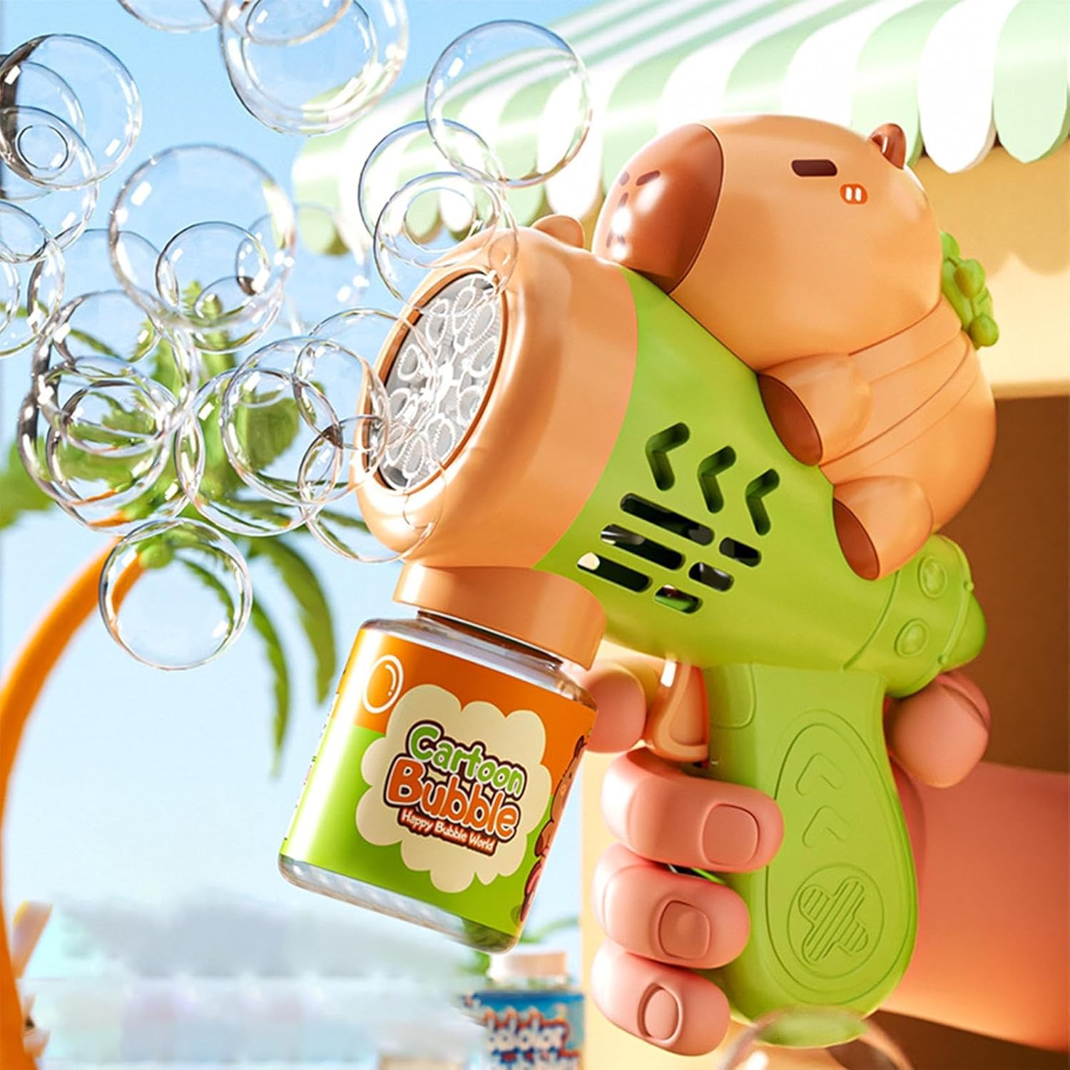 Compagno di vacanza: con un design carino e un fascino estetico, questo soffiatore di bolle è il compagno perfetto per le feste. Arricchisce le celebrazioni e, grazie al suo aspetto affascinante, accompagna le gioie dello sviluppo del bambino con ricordi indelebili. Design ergonomico: design morbido con bordi arrotondati per una facile maneggevolezza e una presa sicura. Il contenitore a prova di perdite garantisce un divertimento ininterrotto senza fuoriuscite. Forme di animali felici: motivi di animali dinamici con combinazioni di colori audaci attirano magicamente l'interesse dei bambini e aumentano la visibilità del giocattolo in giardino o nel parco. Divertimento senza sosta: lo spruzzo continuo di bolle garantisce un gioco ininterrotto, consente lo scoppio libero e senza bolle ed evita interruzioni della ricarica se utilizzato con una mano per il massimo divertimento all'aperto. Ampia gamma di applicazioni: deliziato dagli affascinanti colori dell'arcobaleno per un'atmosfera esuberante, perfetto per il divertimento all'aria aperta con un pratico design portatile che ispira facilmente gioia condivisa