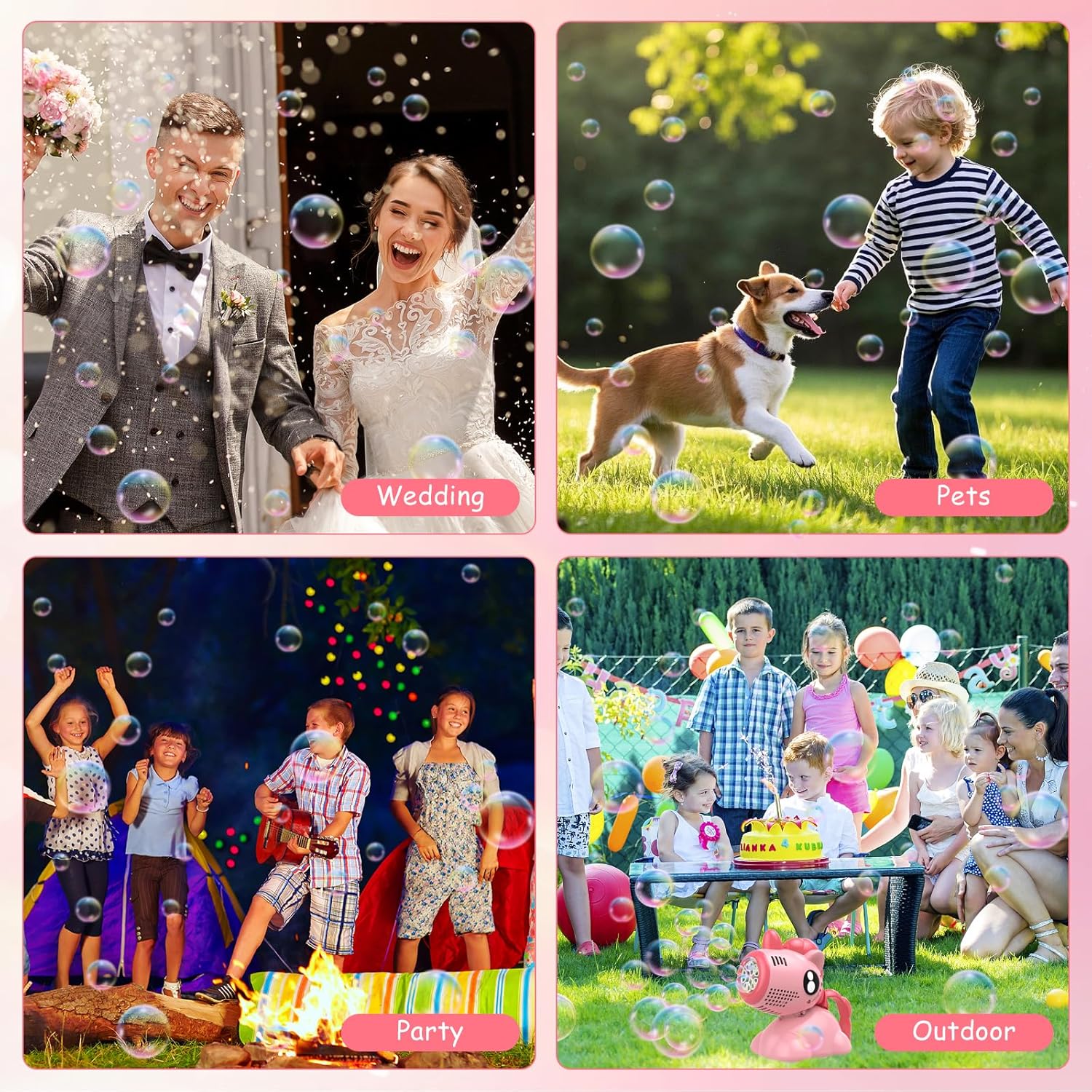 【Materiali di prima qualità】 La macchina per bolle di sapone è realizzata in plastica ABS senza BPA, robusta e durevole, con una superficie liscia e senza bordi taglienti, e il liquido per bolle è costituito da una soluzione di sapone che è delicata e sicura e non danneggia la pelle, consentendo ai bambini di giocare con sicurezza. 【Bolle di sapone colorate da sogno】 La macchina per bolle di sapone per bambini ha 10 prese d'aria e produce più di 10.000 bolle di sapone colorate al minuto. È ideale per bambini dai 3 anni in su. Quest'estate, crea un'infanzia colorata e ricordi indimenticabili per i tuoi bambini con la macchina per bolle di sapone 【Luce LED fantastica】 La macchina per bolle di sapone può essere attivata semplicemente premendo l'interruttore in modalità testa pompon, ed è anche dotata di luci LED colorate, così puoi vedere bolle di sapone colorate anche di notte, e design anti-perdite a 360°, non importa come la giri, non perderà liquidi (attendere 5-10 secondi al primo utilizzo) e migliaia di bolle di sapone colorate vengono rilasciate continuamente. Ricarica una volta e goditi ore di divertimento.,Regalo ideale per i bambini: il kit della macchina per bolle di sapone contiene 1 macchina per bolle di unicorno, 1 batteria al litio da 3,7 V, 1 adesivo, 1 cavo di ricarica, 1 soluzione per bolle da 100 ml. Ideale per le giornate dei bambini, compleanni, matrimoni, Natale, feste e attività all'aperto, è un regalo ideale per i bambini