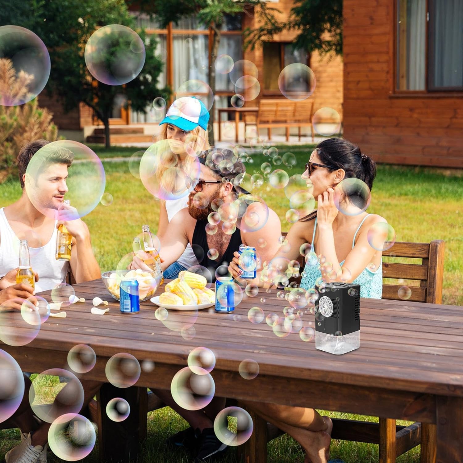 Fascino Bolle da Viaggio: La costruzione robusta supporta le esigenze di intrattenimento outdoor, il design portatile offre massima comodità, ideale per vari ambienti con mobilità garantita in ogni momento Tecnologia Antigoccia: Serbatoio impermeabile da 400ml e progettazione avanzata assicurano prestazioni affidabili per ore di divertimento continuo Efficienza Produttiva: ad alta efficienza permette rilascio continuo bolle mantenendo prestazioni regolari e distribuzione uniforme durante l'utilizzo Funzione Semplice: Attivazione immediata con produzione di bolle abbondanti per un'esperienza senza sforzo, configurazione rapida e funzionamento intuitivo tramite un singolo pulsante che garantisce divertimento istantaneo Atmosfera coinvolgente: Modulo LED integrato crea un'atmosfera immersiva con luci a cambio colore automatico, arricchisce gli effetti visivi e si attiva facilmente con un solo pulsante per praticità d'uso