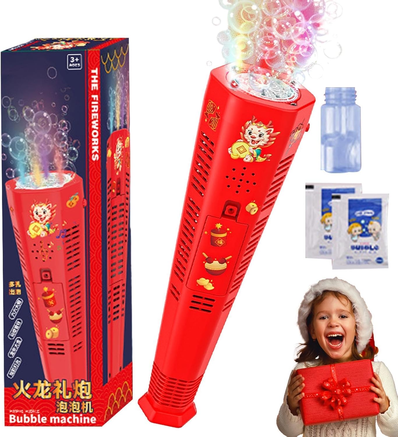 Spettacolo pirotecnico abbagliante: la nostra macchina elettrica per bolle con luci crea un effetto realistico senza materiali infiammabili, garantendo un'esperienza visivamente sbalorditiva e sicura per gli ambienti. Bolla riflettente: aggiungi un po' di fascino con la nostra macchina per bolle a 20 fori che crea un paese delle meraviglie ecologico. L'abbondanza di bolle colorate e di effetti di luce riflettenti miglioreranno qualsiasi festa o evento con un'atmosfera affascinante e . Vivi grandi feste: dai vita alle tue celebrazioni con una realistica macchina per bolle. Goditi effetti sonori vivaci, un'atmosfera festosa al chiuso, un design della mascotte specifico per l'anno e una simulazione di luci scintillanti, creando un'esperienza festiva straordinaria. Ampio utilizzo: un fascino unico per eventi, questa macchina per bolle aggiunge fascino diurno e notturno a qualsiasi riunione, migliorando l'arredamento delle bolle nuziali e gli abbellimenti per riunioni annuali con versatilità. Regalo sincero: lascia un'impressione duratura con la nostra macchina per bolle con luci, uno strumento per migliorare le celebrazioni che fonde fusione tradizionale e moderna. È una scelta ponderata per ogni occasione, soprattutto per l'esclusività del Serpent Year, per una sorpresa indimenticabile e ottimale.