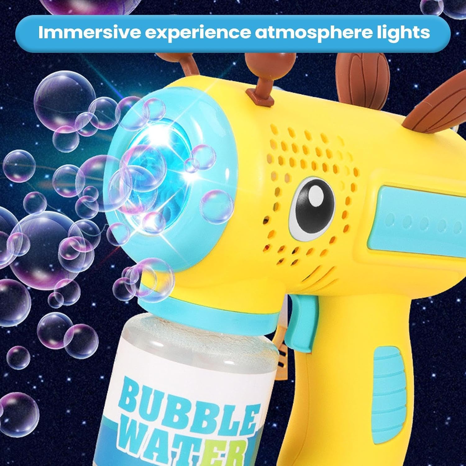 Giochi Notturni Avvincenti: La macchina e bolle con luci colorate integrate crea un'attrazione visivamente dinamica durante il gioco serale, stimolando l'interesse dei bambini per l'esplorazione mentre giocano con le bolle sotto tonalità luminose, rendendo le attività serali all'aperto o in casa più divertenti e piacevoli per bambini e genitori. Porta Gioia e Divertimento: Questa macchina per bolle garantisce assenza di fuoriuscite e perdite con la sua struttura sigillata ben progettata, permettendo ai bambini di immergersi completamente nella gioia di creare bolle. I piccoli possono godere del divertimento senza preoccupazioni di macchiare vestiti o pelle, grazie al meccanismo sicuro che previene spillamenti. Ideale per uso quotidiano, la macchina per bolle assicura un intrattenimento continuo durante giochi in casa o all'aperto, promu Costruito per durare: Caratterizzato da una struttura e bordi arrotondati, il bubble blower garantisce un utilizzo sicuro in interni ed esterni. L'attenzione catturante del design 'ape conquista l'attenzione, assicurando momenti di gioia ovunque i bambini decidano di giocare, grazie a una qualità durevole e a una maneggevolezza eccellente. Produzione di Bolle Dense: La macchina per bolle utilizza una tecnologia elettrica di spruzzo continuo per generare un volume elevato di bolle dense e fitte, creando un'atmosfera divertente perfetta per feste ed eventi all'aperto l'effetto visivo vivace migliora l'esperienza generale e coinvolge tutti. Design ergonomico: Con il suo ugello multiangolazione, la bubble machine supporta un funzionamento monolaterale, soddisfacendo differenti bisogni d'uso e assicurando intrattenimento coinvolgente per picnic, parchi giochi o eventi in giardino, con una struttura pensata per comfort e versatilità d'impiego