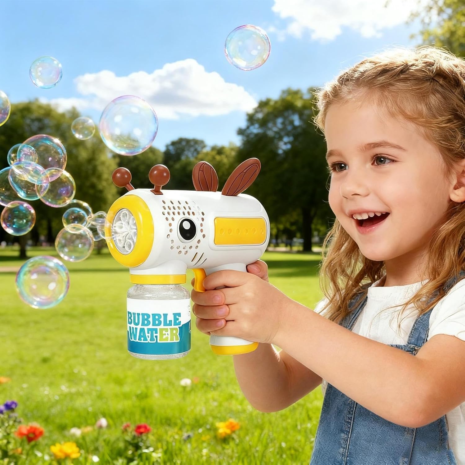 Caratteristica Luminosa: Questo gioco bolle integra vivaci luci built-in che aumentano l'appeal visivo, catturando le giovani menti con un'esperienza dinamica di emissione bolle mentre stimolano la loro curiosità verso luce e movimento durante coinvolgenti giochi serali in interni o esterni. Giocattolo Divertente e Sicuro: La macchina per bolle per bambini vanta un design sigillato e anti-perdita che previene macchie su mani e vestiti, mentre i bambini si divertono con le bolle durante il gioco all'aperto o le feste. Questo giocattolo assicura protezione grazie alla costruzione robusta, permettendo ore di divertimento senza interruzioni e mantenendo le mani e gli abiti puliti in ogni situazione di gioco. Costruito per durare: Caratterizzato da una struttura e bordi arrotondati, il bubble blower garantisce un utilizzo sicuro in interni ed esterni. L'attenzione catturante del design 'ape conquista l'attenzione, assicurando momenti di gioia ovunque i bambini decidano di giocare, grazie a una qualità durevole e a una maneggevolezza eccellente. Effetto Bolle Vivacissimo: Grazie alla tecnologia di spruzzo continuo elettrico, questa macchina per bolle crea una profusione di bolle dense che l'atmosfera durante le feste per bambini, i picnic o i festival, portando gioia ed eccitazione a tutti i partecipanti in contesti dinamici e gioiosi. Semplicità operativa: Grazie all'ugello rotante regolabile, questo dispositivo per bolle consente un utilizzo agevole con una sola mano, incontra varie richieste di impiego e dona maggiore godimento durante festività o sessioni di gioco quotidiane, attraverso un meccanismo user-friendly e di immediata comprensione
