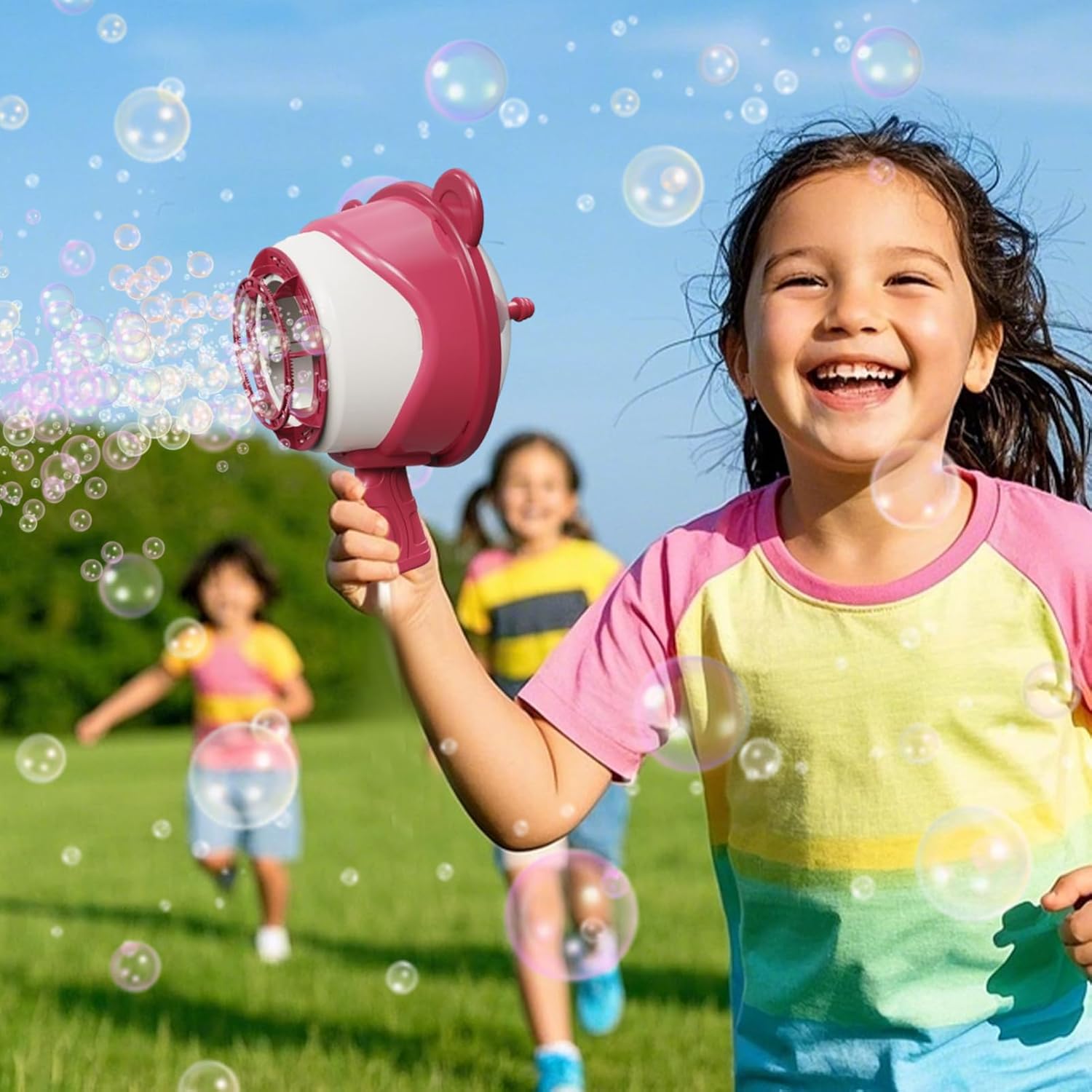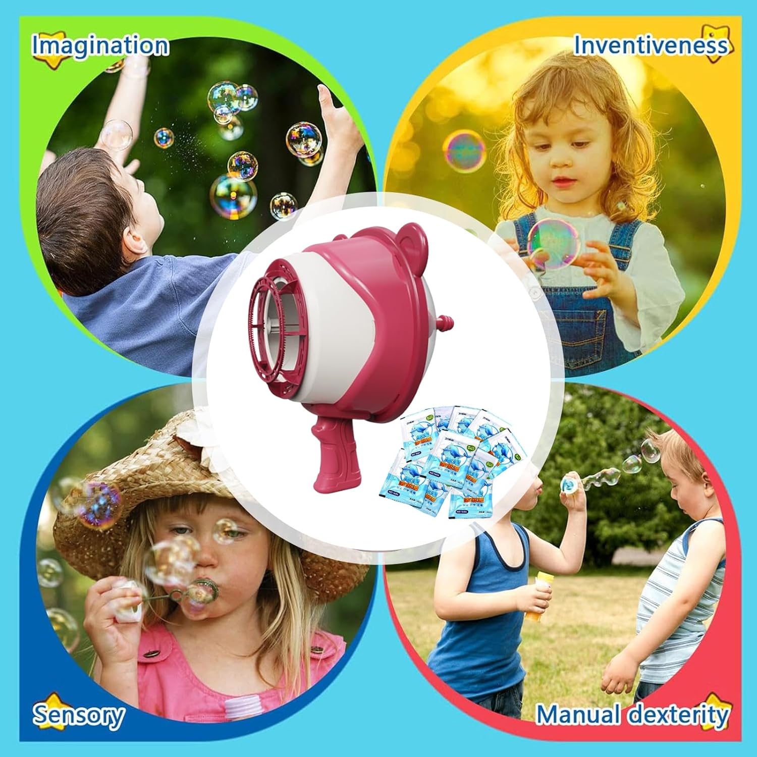 Soluzione per Feste: Trasforma eventi all'aperto in celebrazioni vivaci con questo set di bolle progettato per intrattenere gruppi, fungendo da punto focale vibrante che garantisce divertimento duraturo in ogni incontro sociale. Azione Dinamica:Bacchetta manuale per ore di intrattenimento, crea effetti visivi accattivanti senza sostanze nocive con utilizzo continuativo Coordinazione Occhio-Mano: Stimola la coordinazione occhio-mano e la consapevolezza spaziale durante il gioco attivo con inseguimento di bolle, promuovendo l'impegno fisico e lo sviluppo cognitivo Spettacolo Magico: Realizza bolle grandi con estrema facilità grazie al d'aria robusto, offrendo una di bolle uniformi e sognanti, garantendone la preferenza come giocattolo preferito Leggerezza OttimaleBacchetta bolle con design a orso leggero: impugnatura ergonomica per bambini assicura presa stabile, ottimizzando compatibilità per giochi di gruppo e gioia condivisa in attività all'aperto.