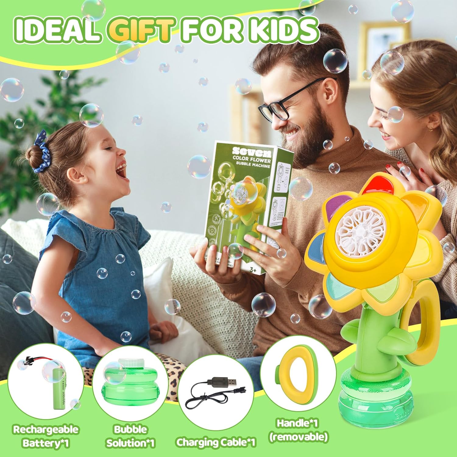 【Accessori ricaricabili e completi】 Il set di bolle Jovicos comprende: 1 macchina per bolle a forma di girasole, 1 liquido per bolle e 1 batteria ricaricabile con design di ricarica intelligente. Costa solo una ricarica e garantisce qualche ora di divertimento! È rispettoso dell'ambiente senza sprecare la batteria. 【Girasole Danzante e Bolle Colorate】3 modalità operative: Scuoti+Luce+Bolle, Scuoti+Luce o Luce. Il luminoso girasole spruzza oltre 10.000 bolle di sapone colorate al minuto: un vero spettacolo di bolle per le feste dei bambini! Facile da usare: basta premere il pulsante di accensione: fuoriusciranno innumerevoli bolle scintillanti. Intrattenimento perfetto per feste in giardino, compleanni di bambini o eventi familiari. 【Materiale premium sicuro per i bambini】 Realizzato in plastica ABS senza BPA in conformità con gli standard di sicurezza internazionali. Serbatoio a tenuta stagna, impugnatura ergonomica e bordi arrotondati garantiscono la sicurezza dei bambini a 360°. Regalo ideale per i bambini: con un affascinante design a forma di girasole e una luce LED colorata, questa macchina crea un'atmosfera magica in ogni occasione. Il regalo di compleanno perfetto per i bambini dai 3 anni in su