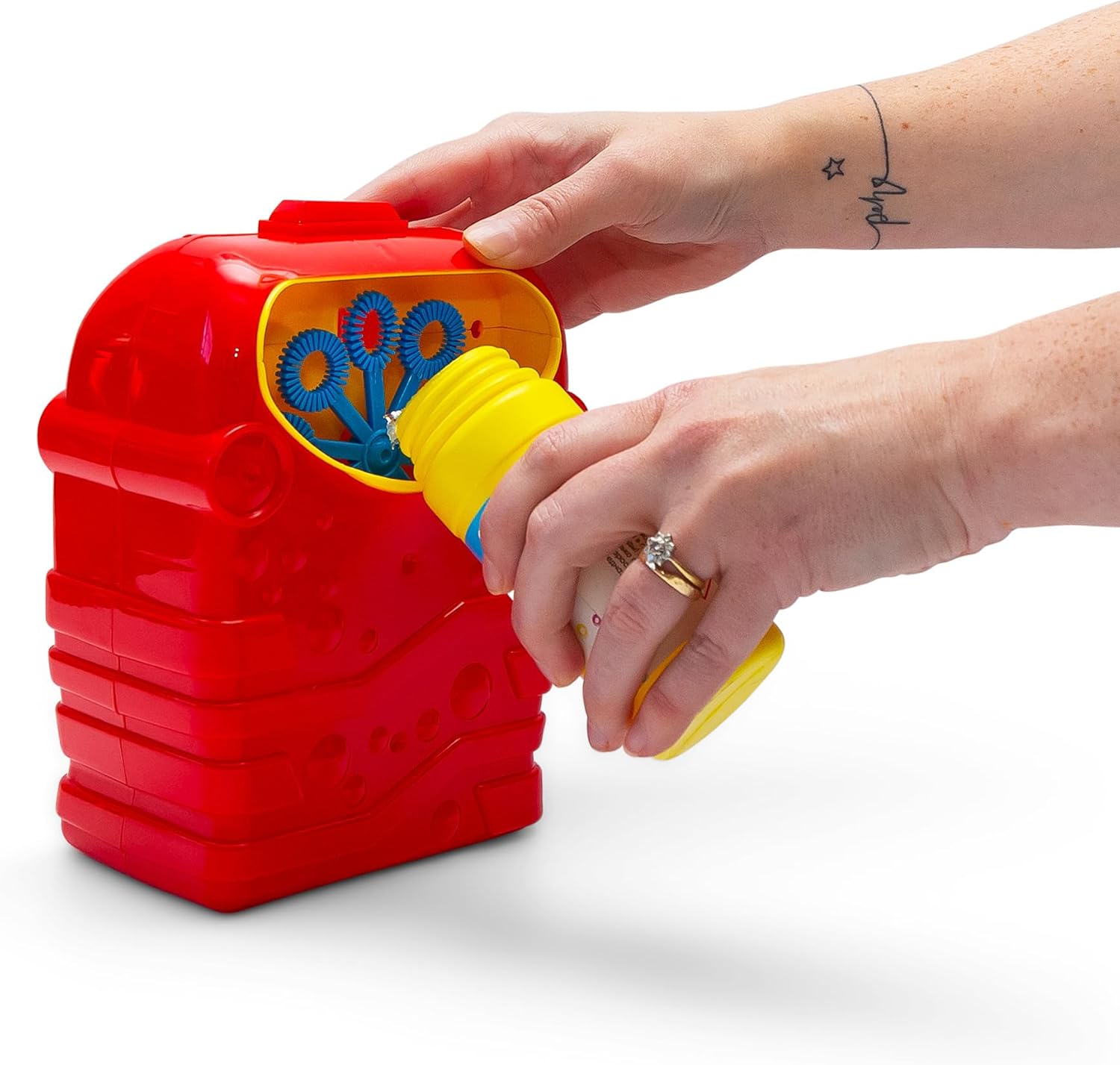 Divertimento tascabile Bolle alimentate a batteria e soluzione per bolle incluse. Disponibile in rosso e verde – 1 inviato a caso Batterie non incluse